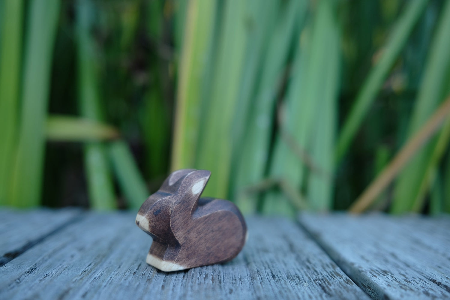 Er hoppelt gerne mit den anderen HolzWald Hasen über die Felder oder lässt sich von den Kindern des Bauernhofes mit Karotten füttern.