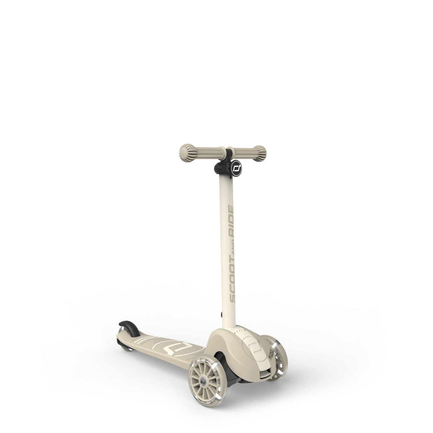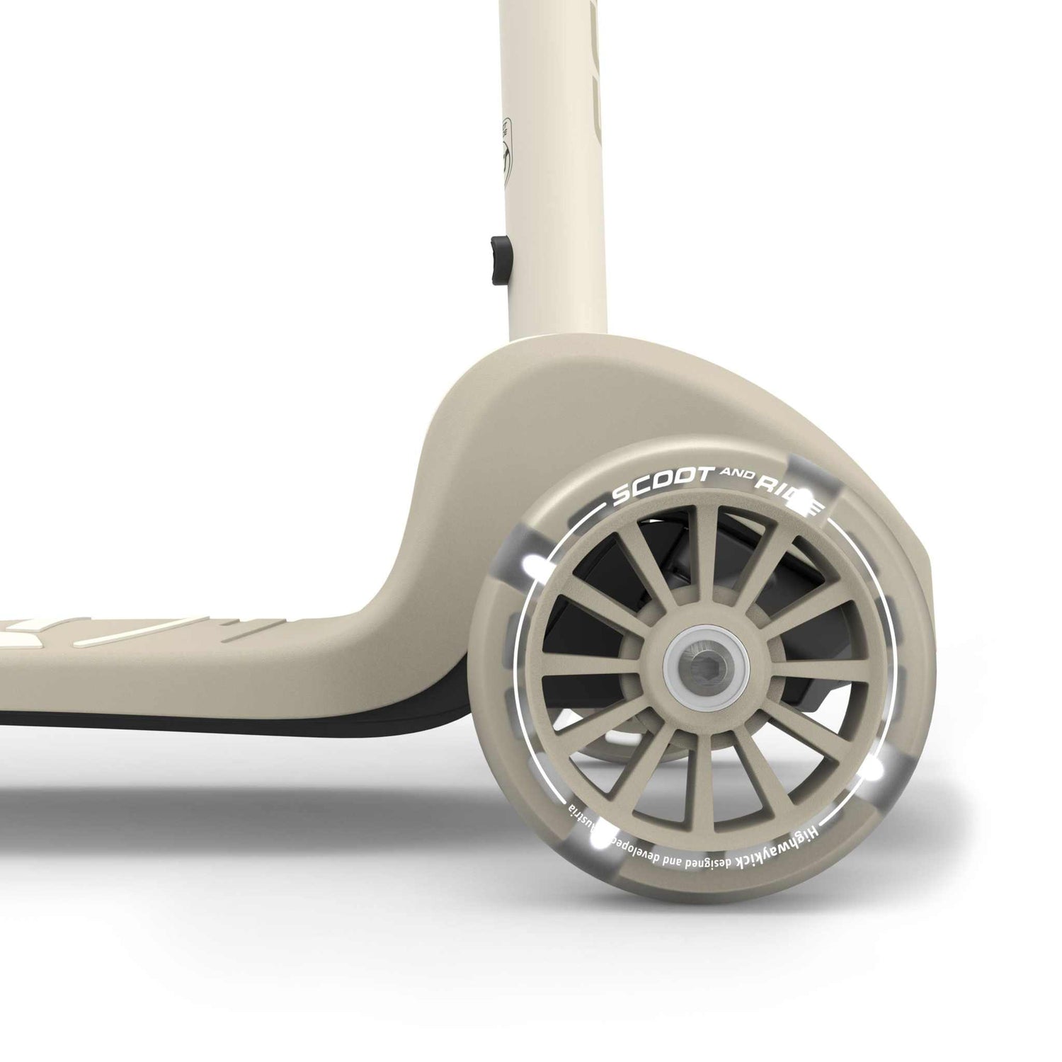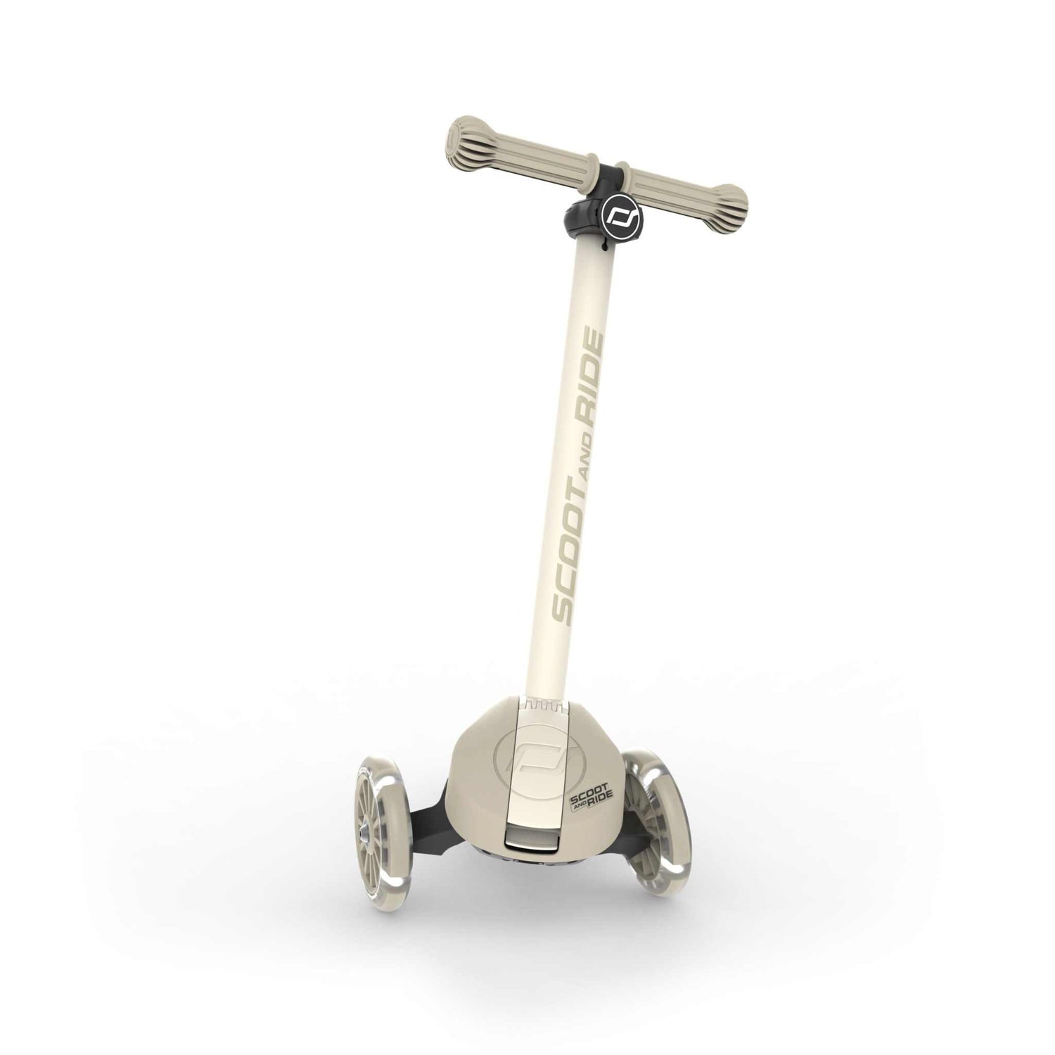 Der Highwaykick 3S von Scoot & Ride ist der ideale Roller für Kinder ab ca. 3 Jahren oder einer Körpergröße von 96 bis 130 cm. Durch seine stabile Bauweise, smarte Features und hochwertige Verarbeitung bietet er langlebigen Fahrspaß und maximale Sicherheit. Das besondere Highlight: Die 2-in-1-Lenkung – der Roller lässt sich sowohl klassisch über das Drehen der Lenkstange als auch intuitiv über Gewichtsverlagerung steuern. Das sorgt für eine besonders einfache und sichere Handhabung – gerade für Fahranfänger. Die Lenkstange ist 3-fach höhenverstellbar und wächst so über Jahre hinweg mit. Dank des neuen Faltmechanismus kann die Lenkstange schnell und ohne Werkzeug nach hinten geklappt werden. Ideal zum Verstauen oder Transportieren. Die weiß leuchtenden LED-Vorderräder bringen nicht nur Spaß, sondern sorgen auch für bessere Sichtbarkeit bei Dämmerung – ganz ohne Batterien. Modell: 00937 Farbe: Ash Alter: ca. 3-7 Jahren Max. Belastung: 50 kg Produktgewicht: 2,6 kg Körpergröße: 96–130 cm Lenkstange: 3-fach höhenverstellbar Design: Zweifarbiger Ton-in-Ton Look Lenkung: 2-fach (klassisch + Gewichtsverlagerung) Faltmechanismus: Ja – Lenkstange nach hinten klappbar Pflegehinweis: Oberfläche mit feuchtem Tuch abwischen. Räder: Vorne: 2 × 120 mm / 4,7" PU-Räder (mit LED-Beleuchtung)/ Hinten: 1 × 80 mm / 3,2" PU-Rad Warnung: Den Artikel bitte nicht für Kinder unter drei Jahren verwenden und am besten nicht unbeaufsichtigt.