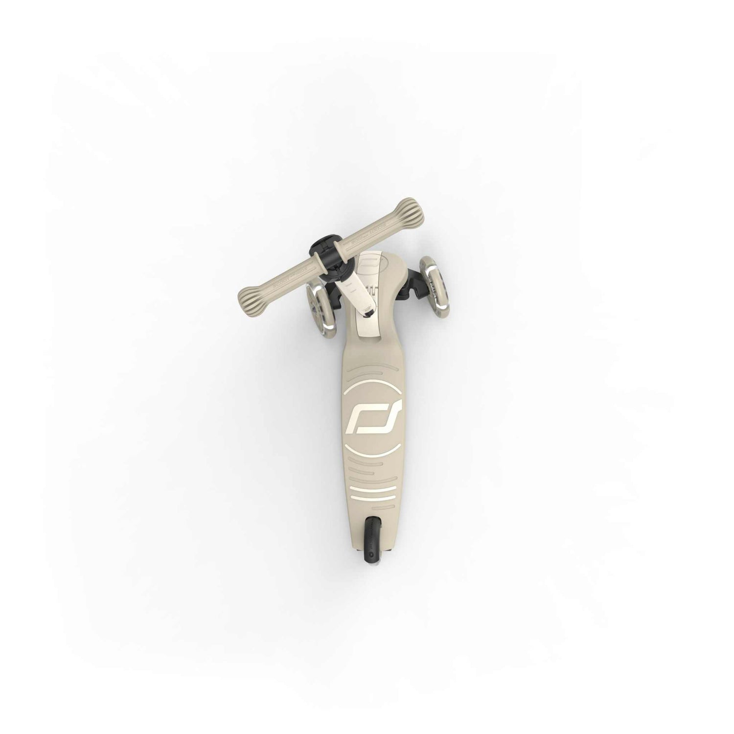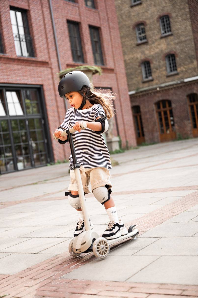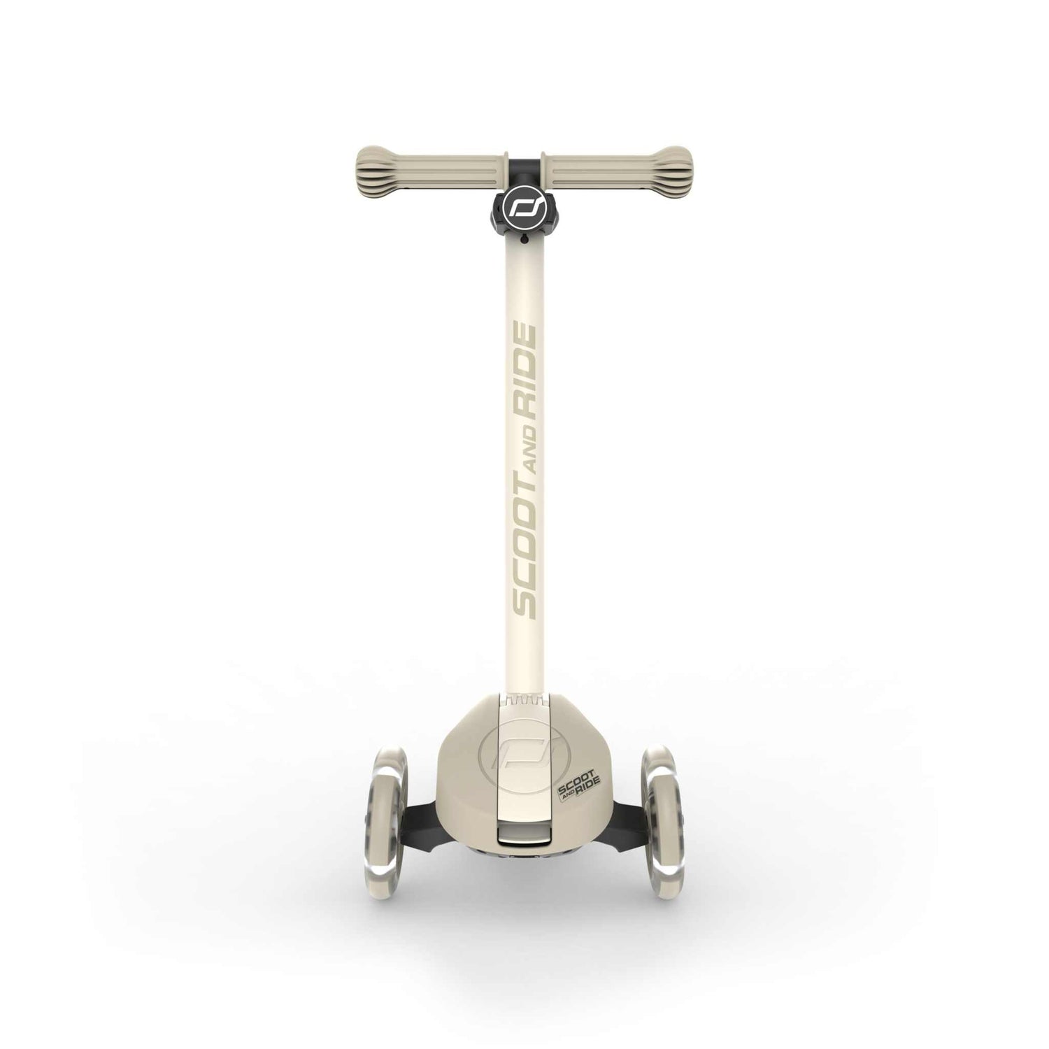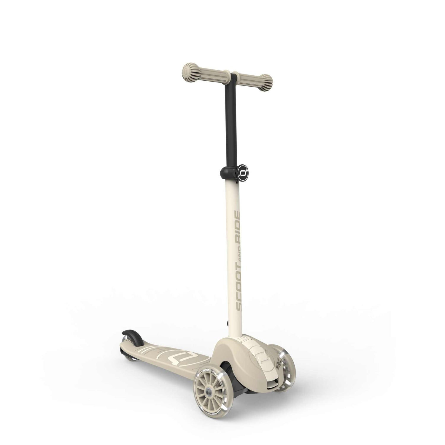 Der Highwaykick 3S von Scoot & Ride ist der ideale Roller für Kinder ab ca. 3 Jahren oder einer Körpergröße von 96 bis 130 cm. Durch seine stabile Bauweise, smarte Features und hochwertige Verarbeitung bietet er langlebigen Fahrspaß und maximale Sicherheit. Das besondere Highlight: Die 2-in-1-Lenkung – der Roller lässt sich sowohl klassisch über das Drehen der Lenkstange als auch intuitiv über Gewichtsverlagerung steuern. Das sorgt für eine besonders einfache und sichere Handhabung – gerade für Fahranfänger. Die Lenkstange ist 3-fach höhenverstellbar und wächst so über Jahre hinweg mit. Dank des neuen Faltmechanismus kann die Lenkstange schnell und ohne Werkzeug nach hinten geklappt werden. Ideal zum Verstauen oder Transportieren. Die weiß leuchtenden LED-Vorderräder bringen nicht nur Spaß, sondern sorgen auch für bessere Sichtbarkeit bei Dämmerung – ganz ohne Batterien. Modell: 00937 Farbe: Ash Alter: ca. 3-7 Jahren Max. Belastung: 50 kg Produktgewicht: 2,6 kg Körpergröße: 96–130 cm Lenkstange: 3-fach höhenverstellbar Design: Zweifarbiger Ton-in-Ton Look Lenkung: 2-fach (klassisch + Gewichtsverlagerung) Faltmechanismus: Ja – Lenkstange nach hinten klappbar Pflegehinweis: Oberfläche mit feuchtem Tuch abwischen. Räder: Vorne: 2 × 120 mm / 4,7" PU-Räder (mit LED-Beleuchtung)/ Hinten: 1 × 80 mm / 3,2" PU-Rad Warnung: Den Artikel bitte nicht für Kinder unter drei Jahren verwenden und am besten nicht unbeaufsichtigt.