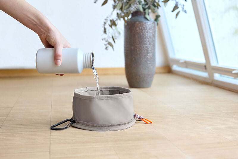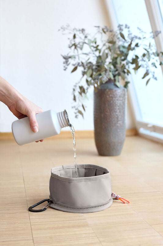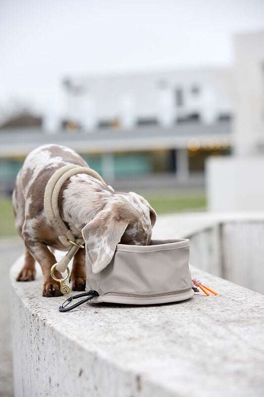 Der Hundenapf "to oo" Tura von PALOPA ist ein praktisches und unverzichtbares Accessoire für Hundebesitzer, die viel unterwegs sind und ihren Vierbeiner auch außerhalb des Hauses mit Futter und Wasser versorgen möchten. Der Napf kann einfach zusammengefaltet und mit einem Reißverschluss verschlossen werden, was den Transport erleichtert. Dank des Karabiners kann der Hundenapf bequem an einer Tasche oder einem Rucksack befestigt werden. Bei Bedarf kann der Napf schnell wieder aufgeklappt werden, um Wasser oder Futter einzufüllen. Nach Gebrauch kann der Napf einfach per Hand ausgespült werden. Durch den Reißverschluss bleibt überschüssiges Futter oder Flüssigkeit sicher im Napf und läuft nicht in der Tasche aus. Der Hundenapf für unterwegs ist schmutz- und wasserabweisend und besteht aus robustem recyceltem Polyester. Er ist in verschiedenen Farben erhältlich und wurde in Zusammenarbeit mit Experten für Hunde entwickelt. Der Hundenapf wiegt nur ca. 0,093 kg ohne Karabiner, der selbst nur 0,012 kg wiegt. Die Pflege gestaltet sich einfach, da der Napf per Hand gewaschen werden kann und nicht gebleicht, trocken gereinigt, gebügelt oder chemisch gereinigt werden sollte. Das Material des Hundenapfes besteht zu 100% aus recyceltem Polyester, die Beschichtung zu 100% aus Polyurethan und das Futter zu 100% aus recyceltem Polyester. Zu den Eigenschaften des Hundenapfes gehören seine Faltbarkeit, der verschließbare Reißverschluss, der praktische Karabiner, die Schmutz- und Wasserabweisung, das robuste Polyester-Material und das Fassungsvermögen von 1,5 Litern. Der Hundenapf "to go" Tura in der Farbe Dark Olive ist somit ein idealer Begleiter für Hundebesitzer, die viel unterwegs sind und ihrem Vierbeiner auch unterwegs eine komfortable Futter- und Wasserversorgung bieten möchten. ✓ Faltbarer Reisenapf für Hunde ✓ Verschließbar mit Reißverschluss ✓ Mit Karabiner ✓ Schmutz- und wasserabweisend ✓ Aus robustem Polyester ✓ 1,5 L