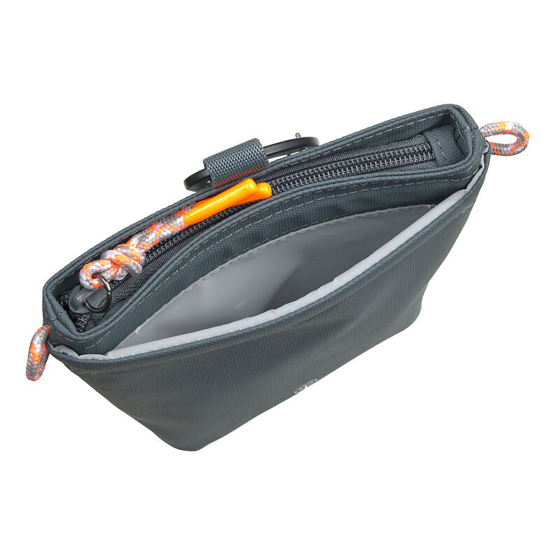 Zum Zubehör gehören ein Karabiner und ein abnehmbarer sowie längenverstellbarer Schultergurt. Mit dem separat erhältlichen Shoulder Cord Karl kann der Beutel individuell angepasst und ein neuer Look kreiert werden.