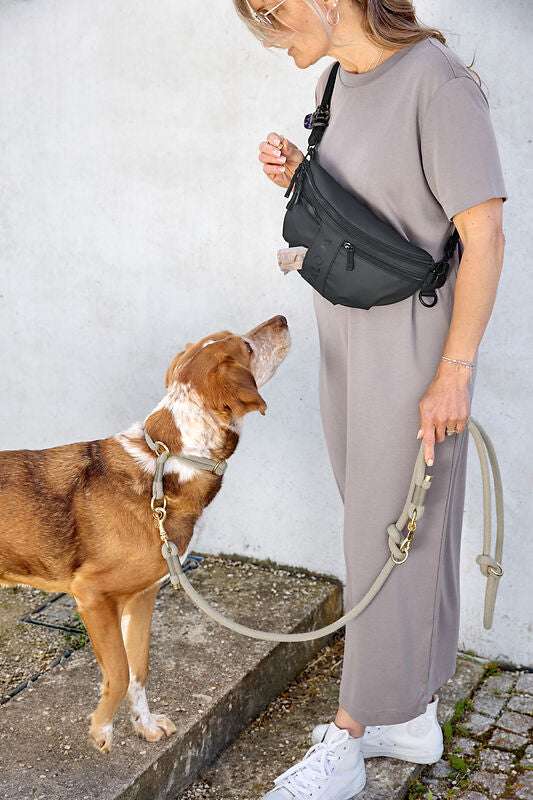 Die vielseitige Leckerli Tasche kann als Umhängetasche, Bauchtasche oder Schultertasche getragen werden.