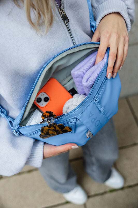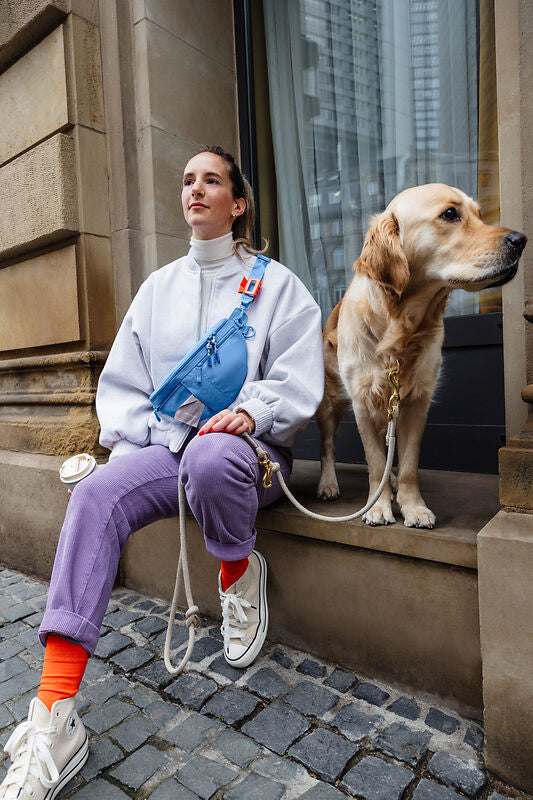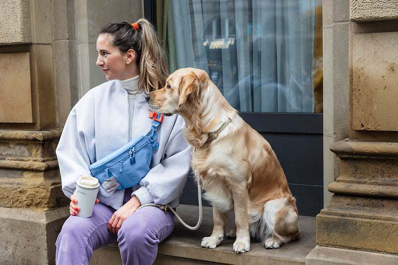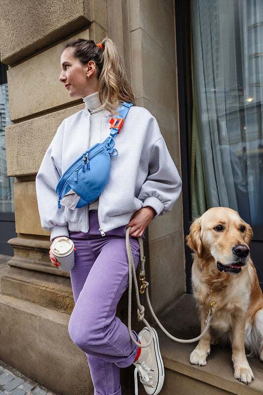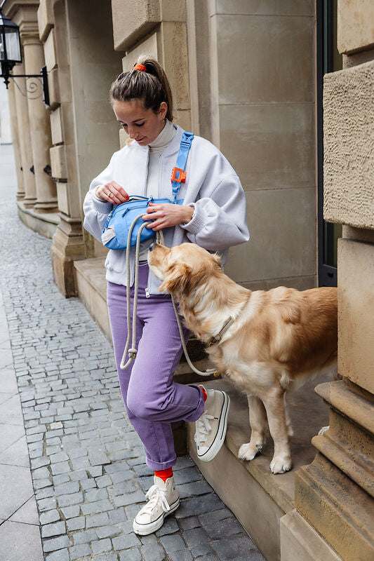 Die Leckerli Tasche Emma in sky blue von PALOPA ist ein praktisches, hochwertiges und modernes Accessoire für alle Hundebesitzer. Mit dieser Tasche hast du beim Gassi gehen mit deinem Vierbeiner alles griffbereit. Die vielseitige Leckerli Tasche kann als Umhängetasche, Bauchtasche oder Schultertasche getragen werden. Sie verfügt über ein durchdachtes Innenleben mit separatem, abwaschbarem Fach für Leckerlis, einem geräumigen Fach mit Reißverschluss für Handy, Schlüssel und andere Utensilien sowie einem praktischen Fach für Kotbeutel. Die Tragegurte der Bum Bag Emma können mühelos abgenommen werden, um die Tasche ganz nach deinen Bedürfnissen anzupassen. Das Außenmaterial besteht aus robustem, beschichtetem recyceltem Polyester, das schmutz- und wasserabweisend ist und sich für jedes Wetter eignet. Die Leckerli Tasche Emma ist in verschiedenen Farben erhältlich und wurde in Zusammenarbeit mit Experten für Hunde entwickelt. Mit Maßen von 32 x 10 x 20 cm und einem Volumen von 1,8 Litern bietet sie ausreichend Platz für alle wichtigen Dinge. Der Tragegurt ist maximal auf 112 cm verstellbar und kann mit Karabinern auf 120 cm verlängert werden. Das Leckerli-Fach ist beschichtet, herausnehmbar und abwaschbar, mit einem Fassungsvermögen von 0,2 Litern. Das Material der Tasche besteht zu 100% aus recyceltem Polyester, mit einer Beschichtung aus 100% Polyurethan und einem Futter aus recyceltem Polyester. Die Tasche sollte nicht gewaschen, gebleicht, trocken gereinigt, gebügelt oder chemisch gereinigt werden. Die Leckerli Tasche Emma punktet mit ihrer schmutz- und wasserabweisenden Eigenschaft, verschiedenen Tragemöglichkeiten, einem Hauptfach mit Reißverschlussöffnung für z.B. das Handy, hochwertiger Verarbeitung und ist ideal für das Hundetraining geeignet. Gönn dir und deinem Vierbeiner dieses praktische Accessoire für unterwegs! ✓ Schmutz- und wasserabweisendes Material ✓ Verschiedene Tragemöglichkeiten, auch zum Umhängen oder als Bauchtasche ✓ Hauptfach mit Reißverschlussöffnung z.B. Handy ✓ Leckerli Tasche für Hunde ✓ hochwertige Verarbeitung ✓ Tasche für Hundetraining
