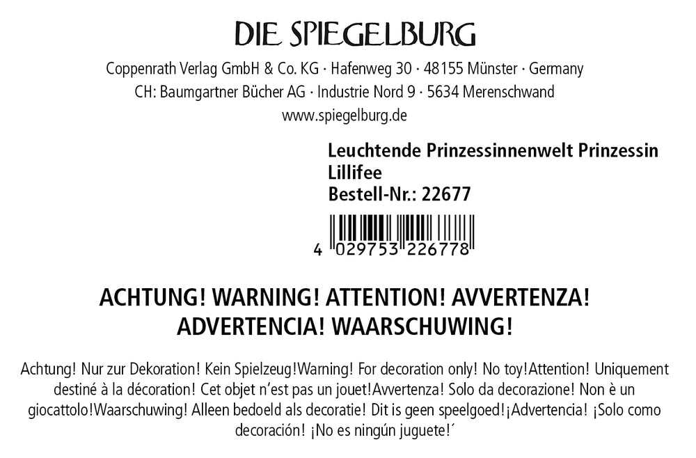 Insgesamt ist das leuchtende Dekorationsset "Leuchtende Prinzessinnenwelt" von Die Spiegelburg eine zauberhafte Möglichkeit, das Kinderzimmer in eine märchenhafte Umgebung zu verwandeln und Kindern eine magische und beruhigende Atmosphäre zu bieten.