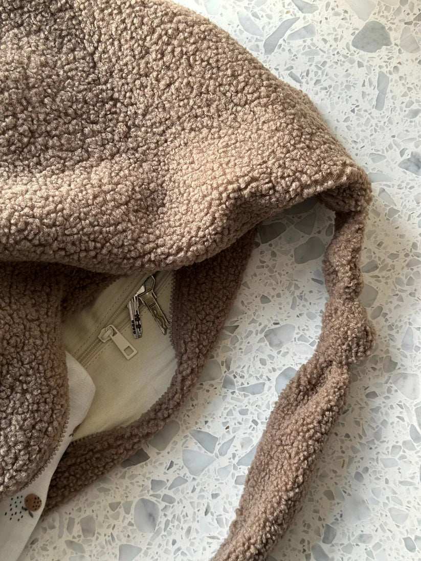 Sie kommt im angesagten Teddylook daher und kann entweder über der Schulter oder als Crossbody-Tasche getragen werden.