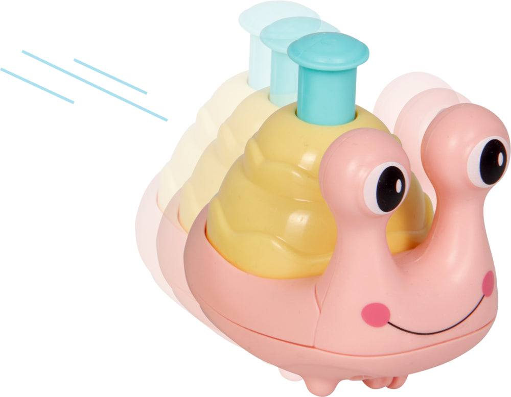 Durch einfaches Drücken flitzt die Rennschnecke los und sorgt für jede Menge Spaß.