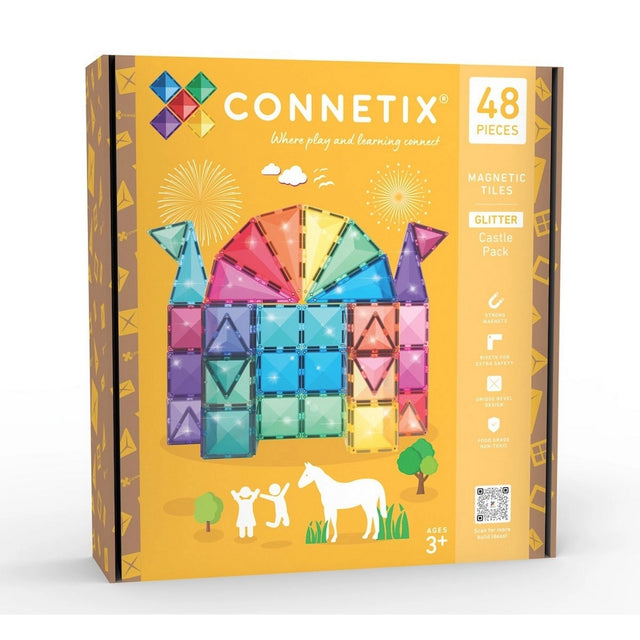 Dieses offene Connetix Spiel-Set enthält Quadrate und eine Mischung aus Dreiecken, die mit mehrfarbigem Glitzer durchzogen sind – perfekt zum Bauen von funkelnden Türmen, Brücken, Tieren und vielem mehr!