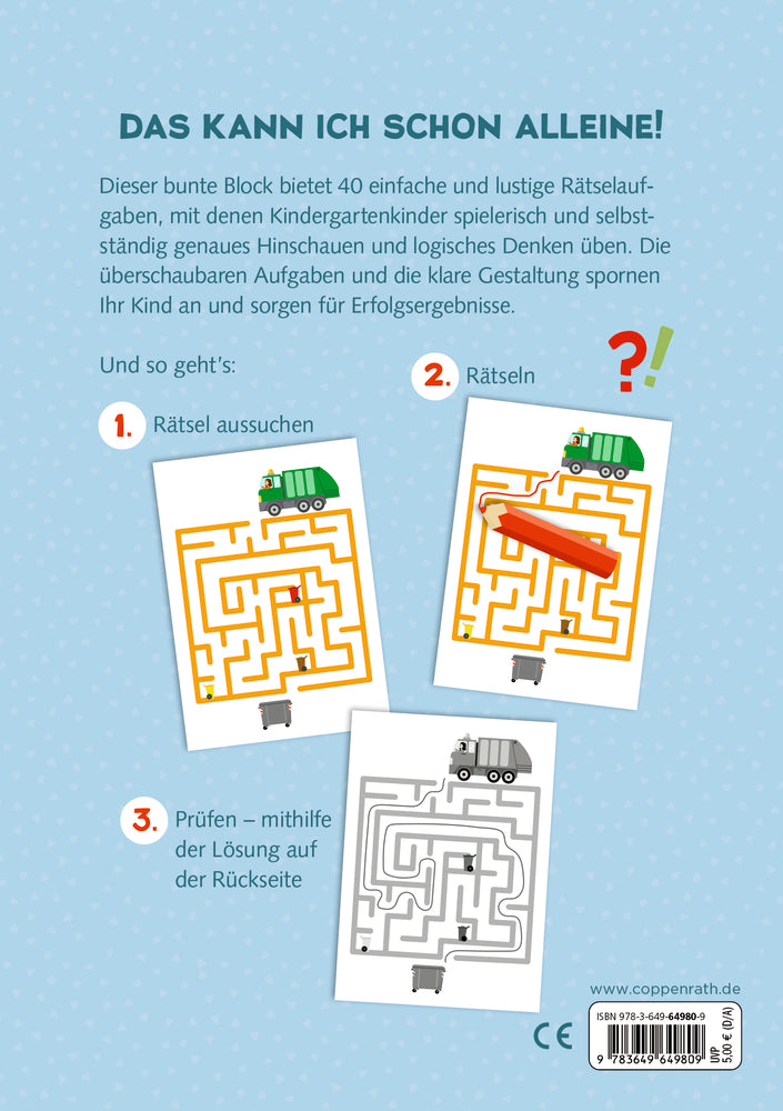 Die überschaubaren Aufgaben und die klare Gestaltung spornen das Kind an und sorgen für Erfolgserlebnisse. Rätsel ohne Text