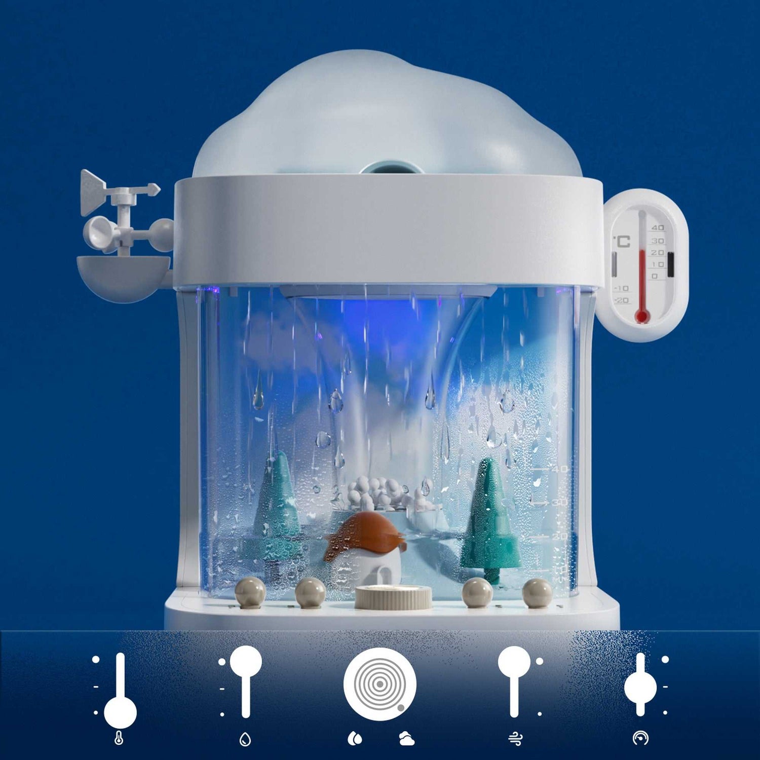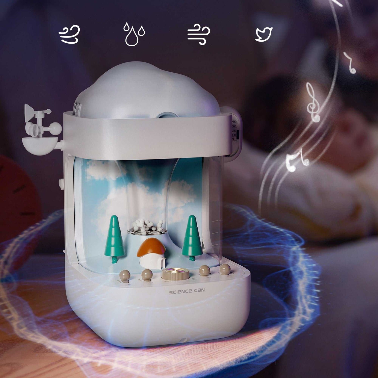 Funktionen & Lerninhalte: 8 realistische Wettersimulationen (Regen, Wolken, Nebel, Tornado etc.), interaktive Steuerung von Temperatur, Luftfeuchtigkeit, Luftdruck & Luftstrom, integrierte Wetterstation mit Schritt-für-Schritt-Anleitung, Luftbefeuchter-Funktion für ein angenehmes Raumklima, 4 weiße Rauschgeräusche zur Förderung von Ruhe & Konzentration, Wissenschaft zum Anfassen – ideal für den naturwissenschaftlichen Unterricht
