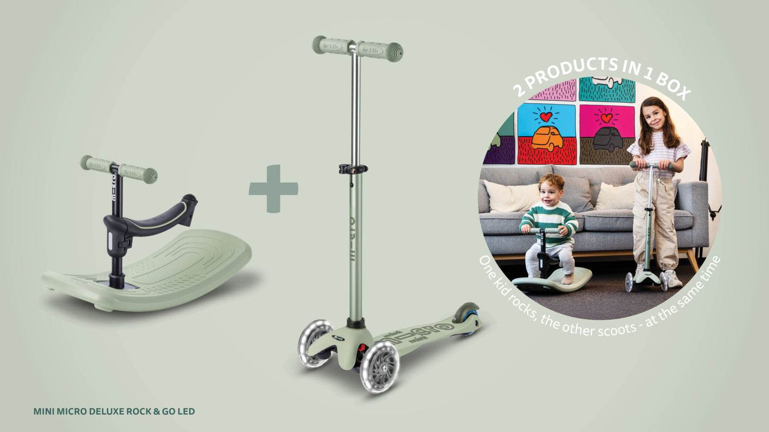 Ein besonderes Highlight des Rock & Go LED ist die Möglichkeit, dass zwei Kinder gleichzeitig damit spielen können. Während das jüngere Kind wippt, kann das ältere Kind mit dem Mini Micro Kickboard herumfahren – für doppelten Spielspaß.