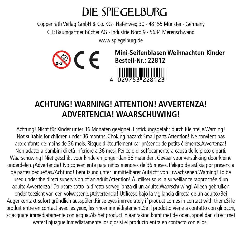 Die Mini-Seifenblasen von Die Spiegelburg/ Coppenrath bringen funkelnden Seifenblasenzauber in die Winterzeit, perfekt für kleine Outdoor-Abenteuer oder fröhliche Spielmomente im Warmen.