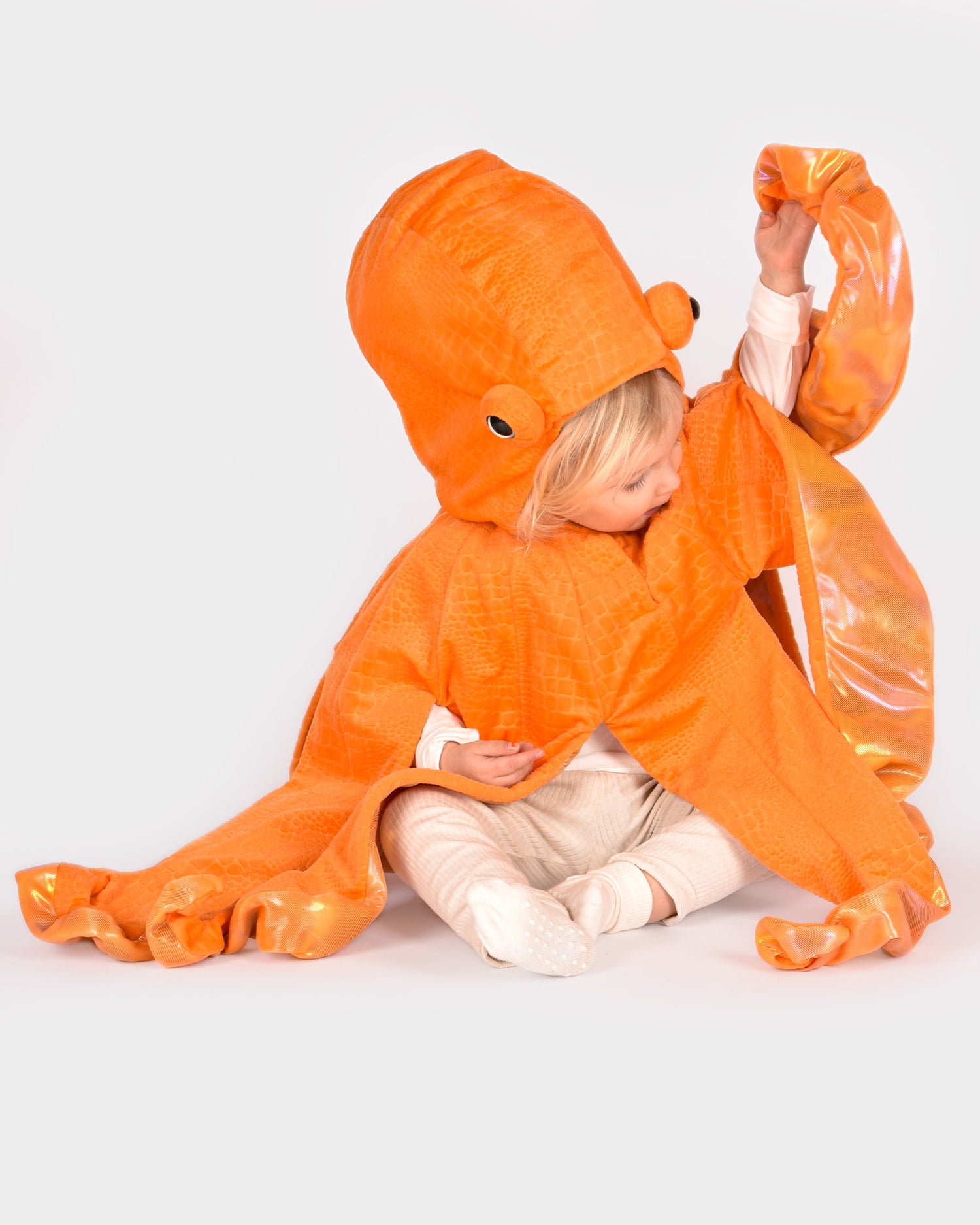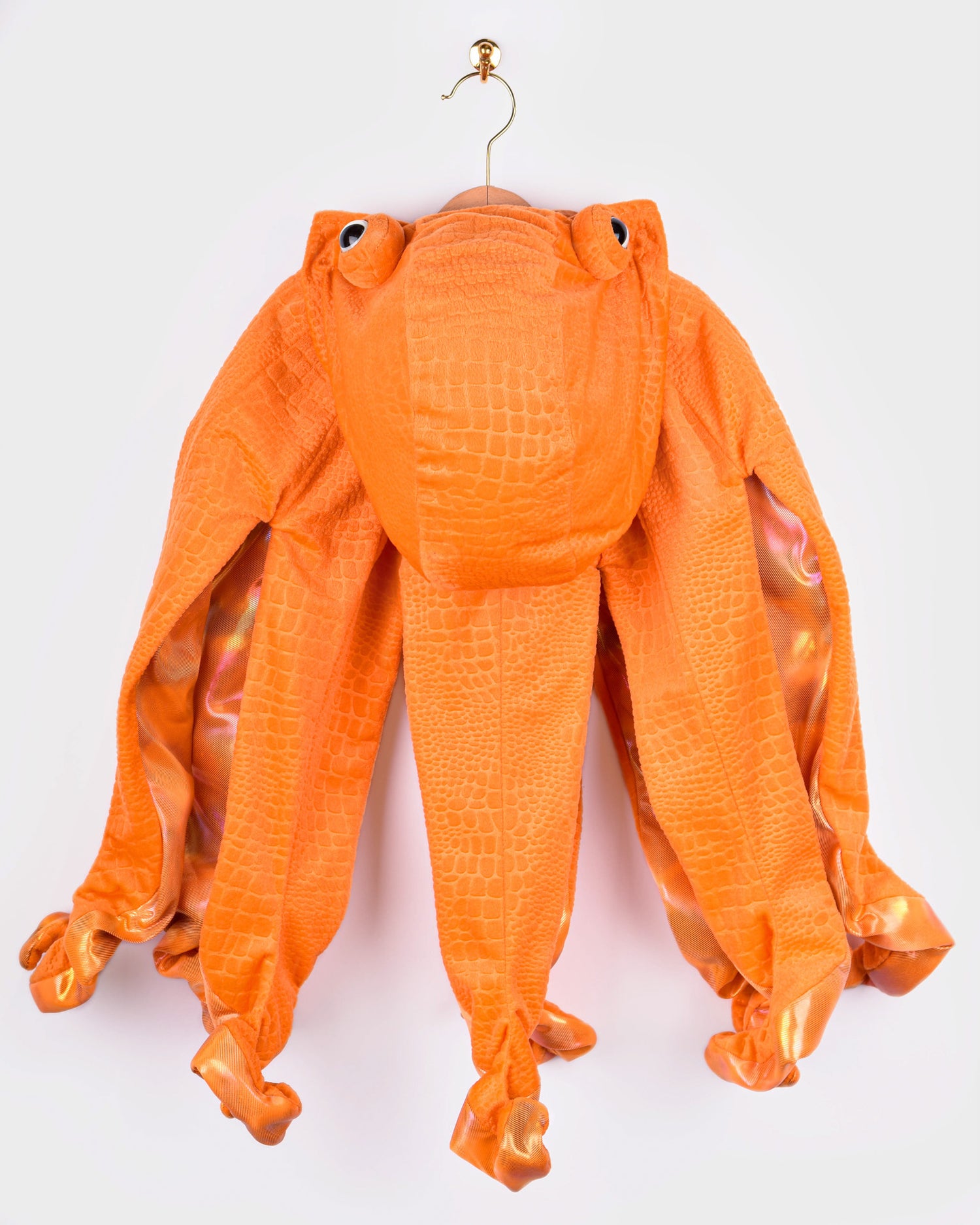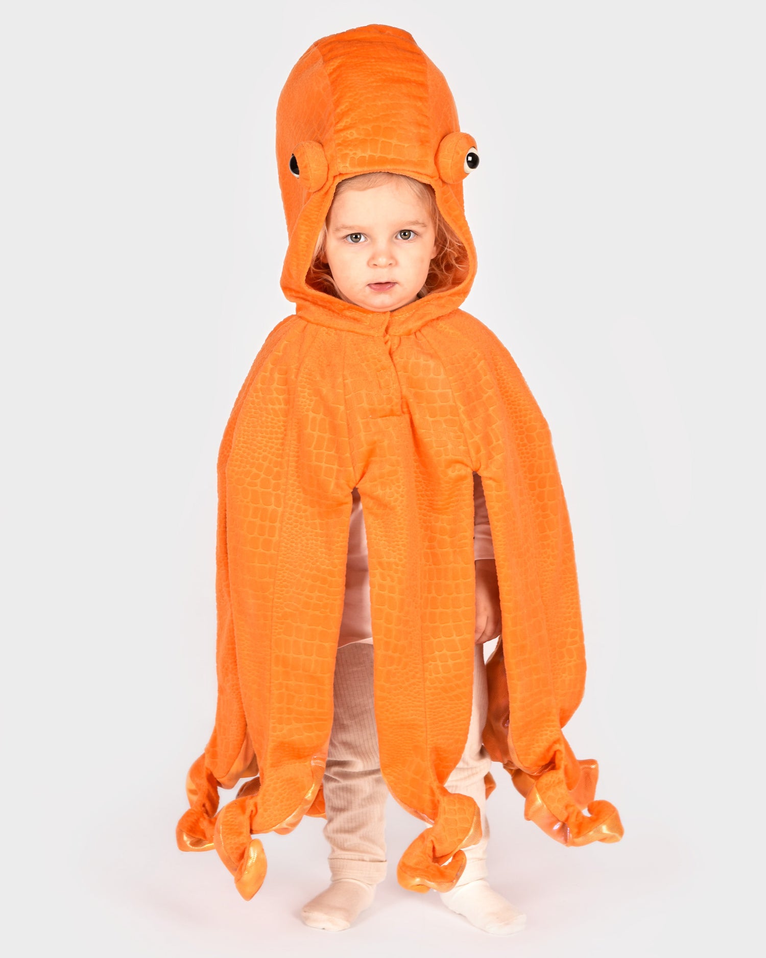 Das orangefarbene Oktopus Kostüm von Robetoy ist speziell für Kinder im Alter von 2-4 Jahren mit einer Größe von 98-104 cm konzipiert.