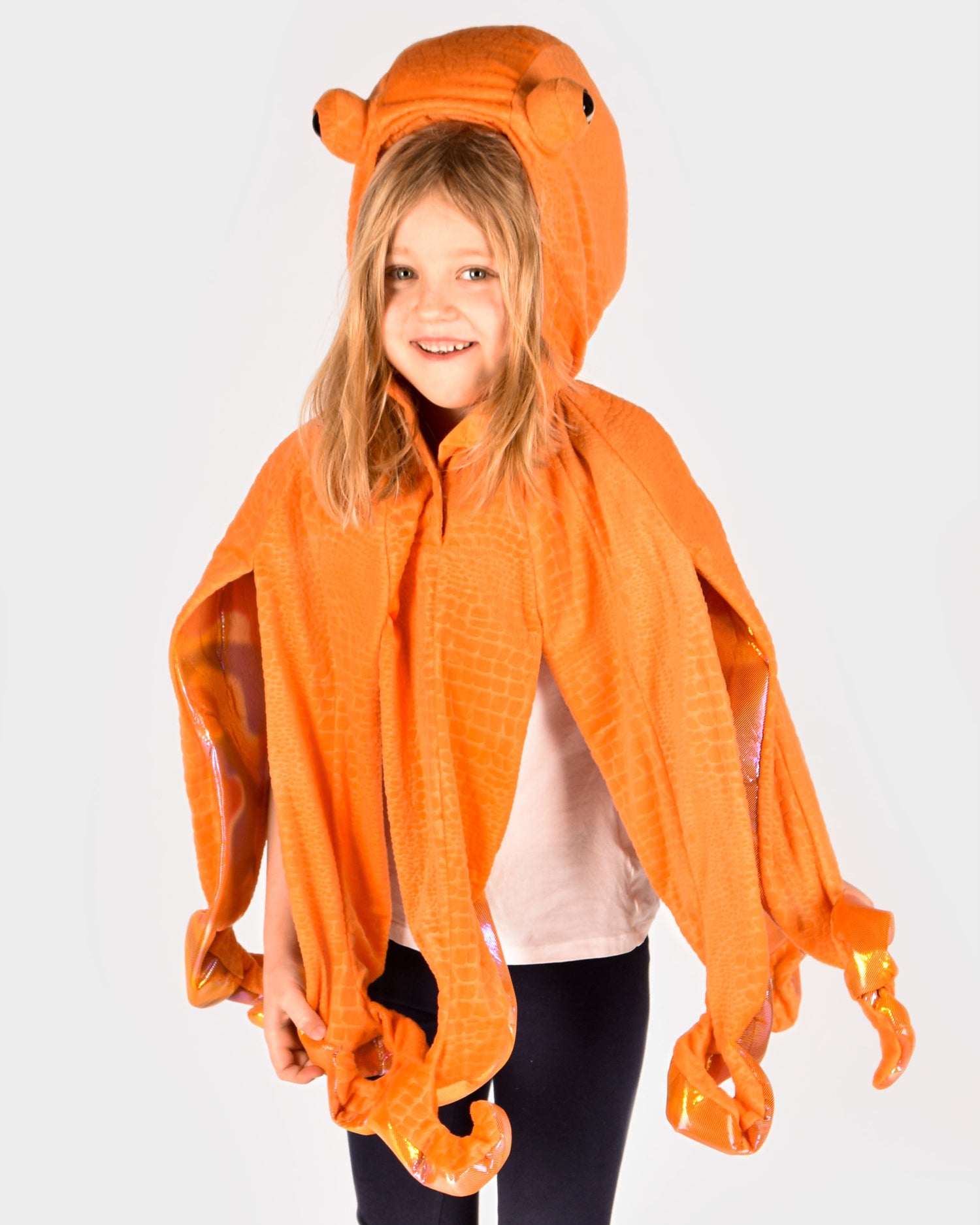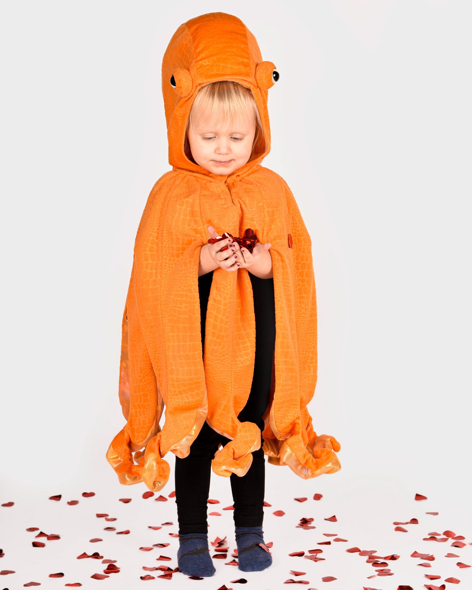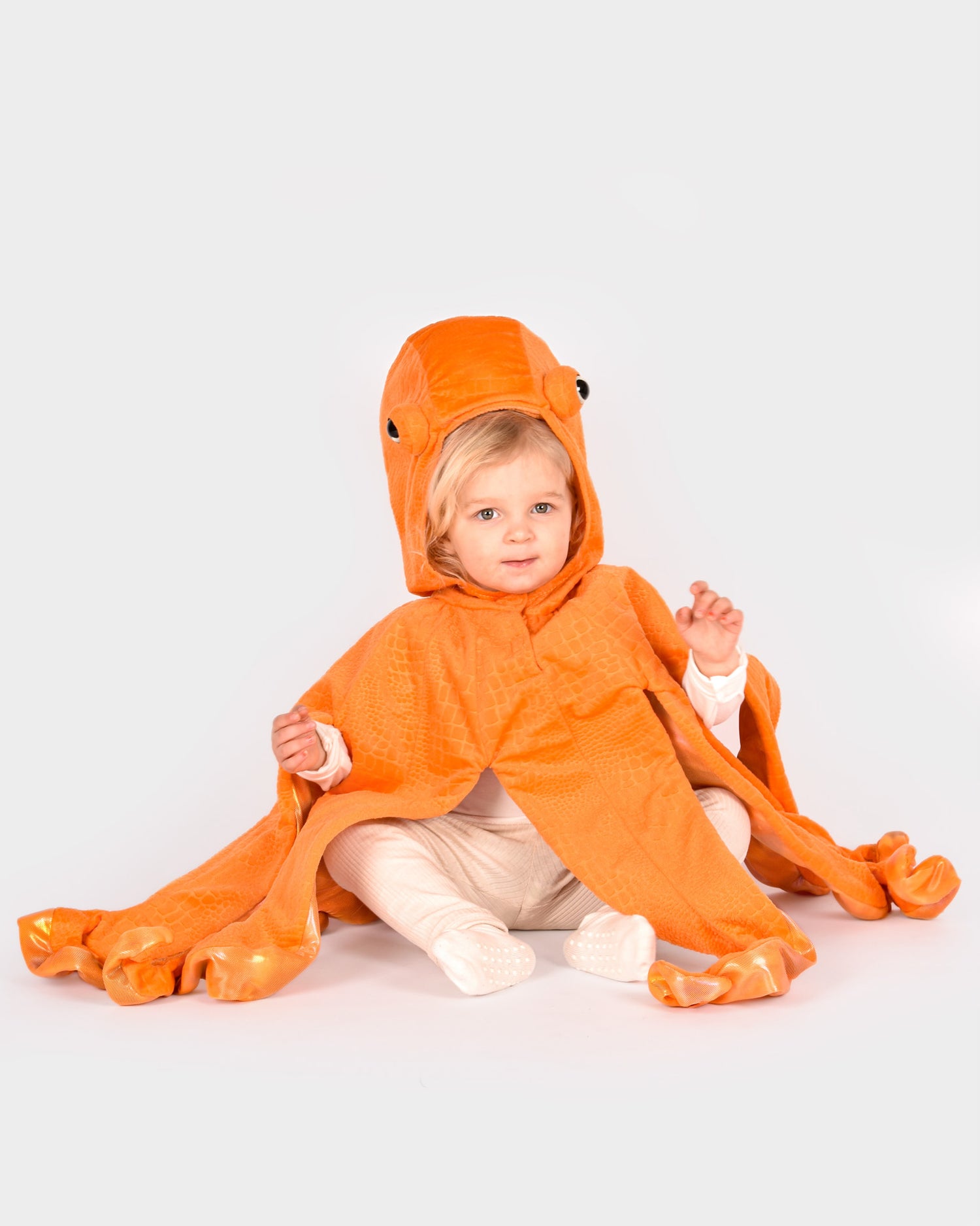 Das orangefarbene Oktopus Kostüm von Robetoy ist speziell für Kinder im Alter von 2-4 Jahren mit einer Größe von 98-104 cm konzipiert.
