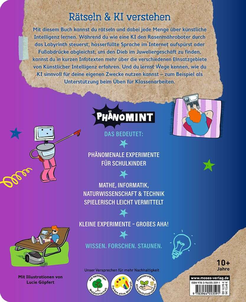 Künstliche Intelligenz ist ein zentrales Thema unserer Zeit – und dieses Buch bringt es Kindern ab 10 Jahren auf unterhaltsame Weise näher. Mit abwechslungsreichen Rätseln wie Labyrinthen, Suchbildern und kleinen Knobelaufgaben wird erklärt, wie KI funktioniert, wo sie im Alltag zum Einsatz kommt und warum sie unsere Welt verändert.