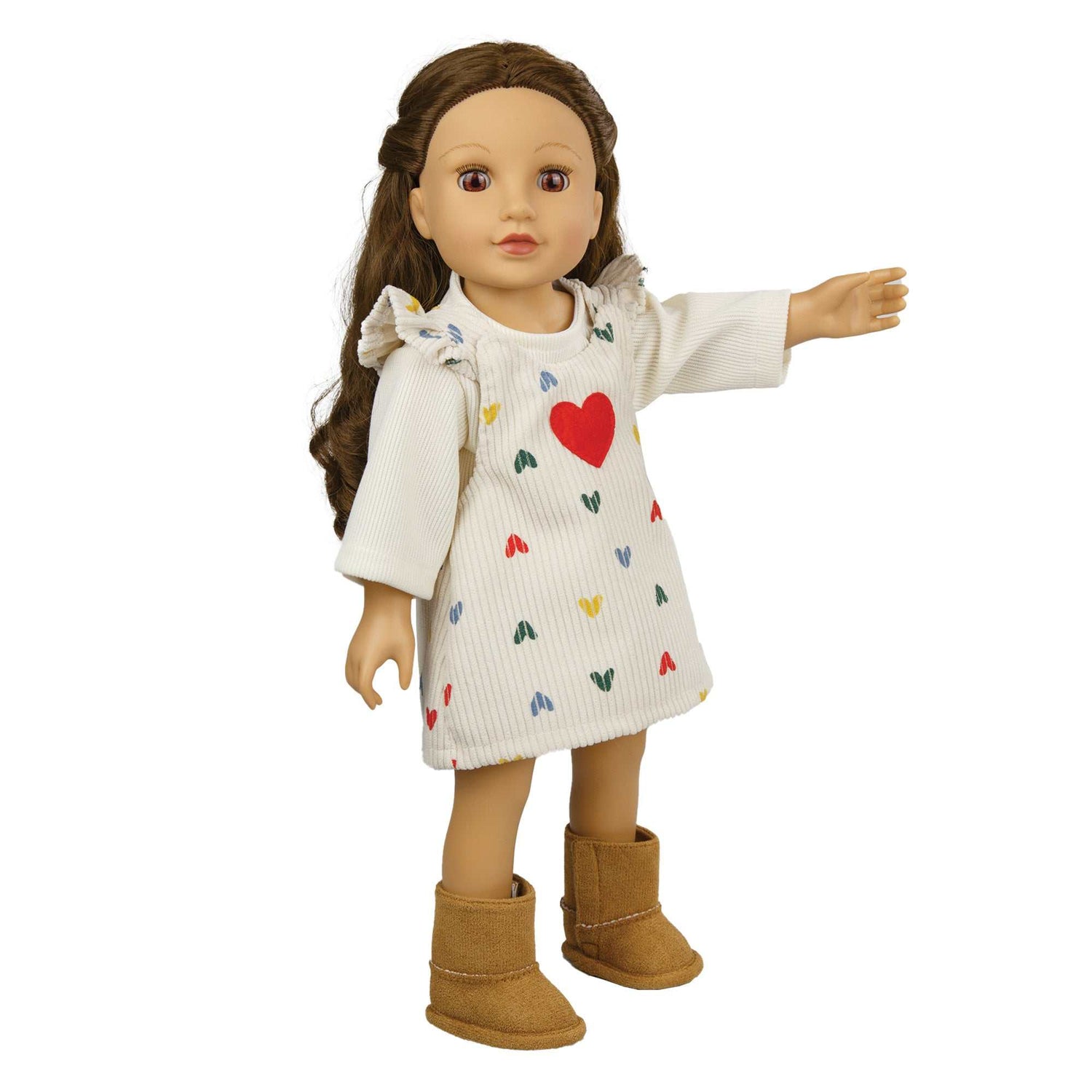 Mit den angesagten Puppen-Stiefeln in Wildleder-Optik von Heless wird die Puppe zum absoluten Trendsetter und ist immer perfekt gestylt. Die Stiefel sind eine prima Ergänzung zu den Outfits der „Herz-Konfetti“-Kollektion, passen aber auch zu vielen weiteren Puppenkleidern des Heless-Sortiments.