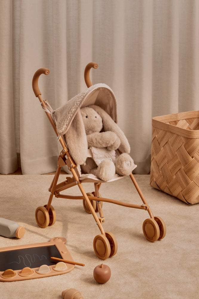 Ob Teddy, Lieblingspuppe oder andere kleine Reisebegleiter – im weichen Puppenwagen ELSIE von Liewood, rollen sie stilvoll durch die Wohnung oder den Park.