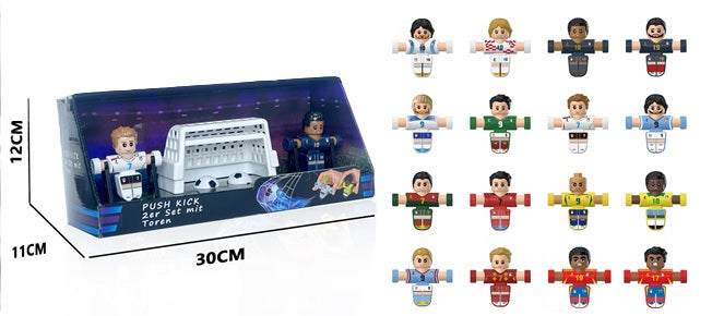 Mit diesem Set können die Spielerfiguren durch einfaches Zusammendrücken der Arme den Ball kicken und somit aufregende Matches austragen. Ob alleine oder mit Freunden, mit Push Kick ist für Unterhaltung gesorgt.