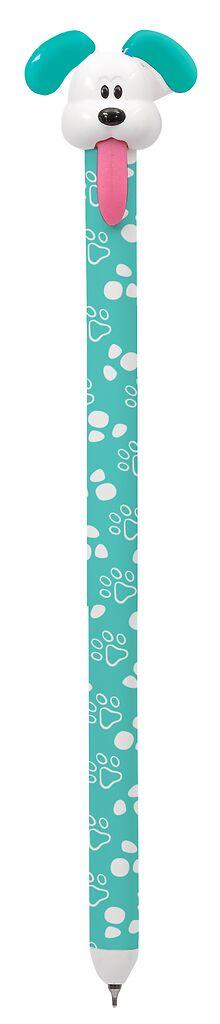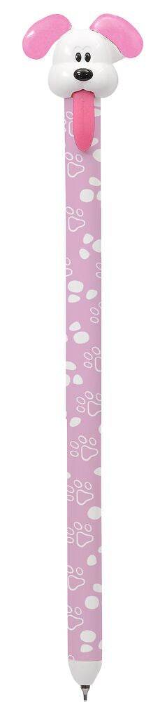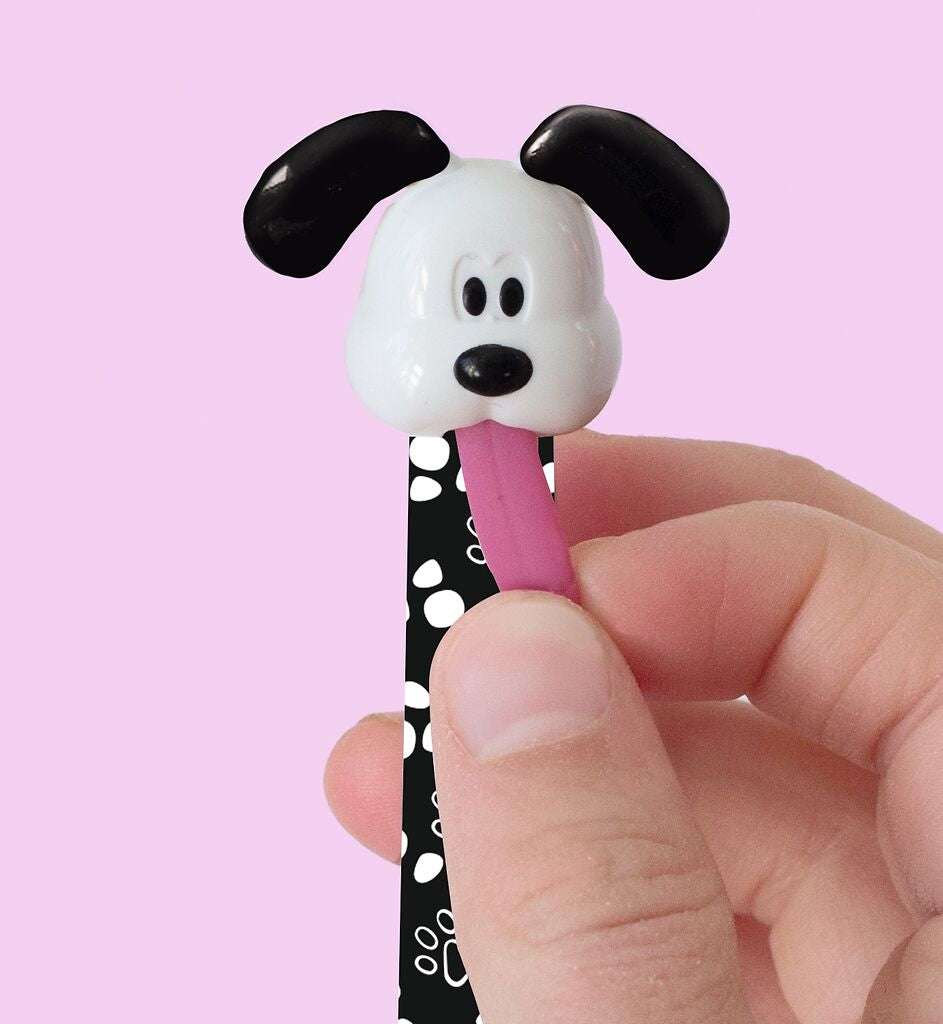 Dieser süße Gelschreiber mit Hunde-Topper von Moses, sorgt für doppelt gute Laune: Einfach an der Zunge ziehen und die Mine fährt aus.