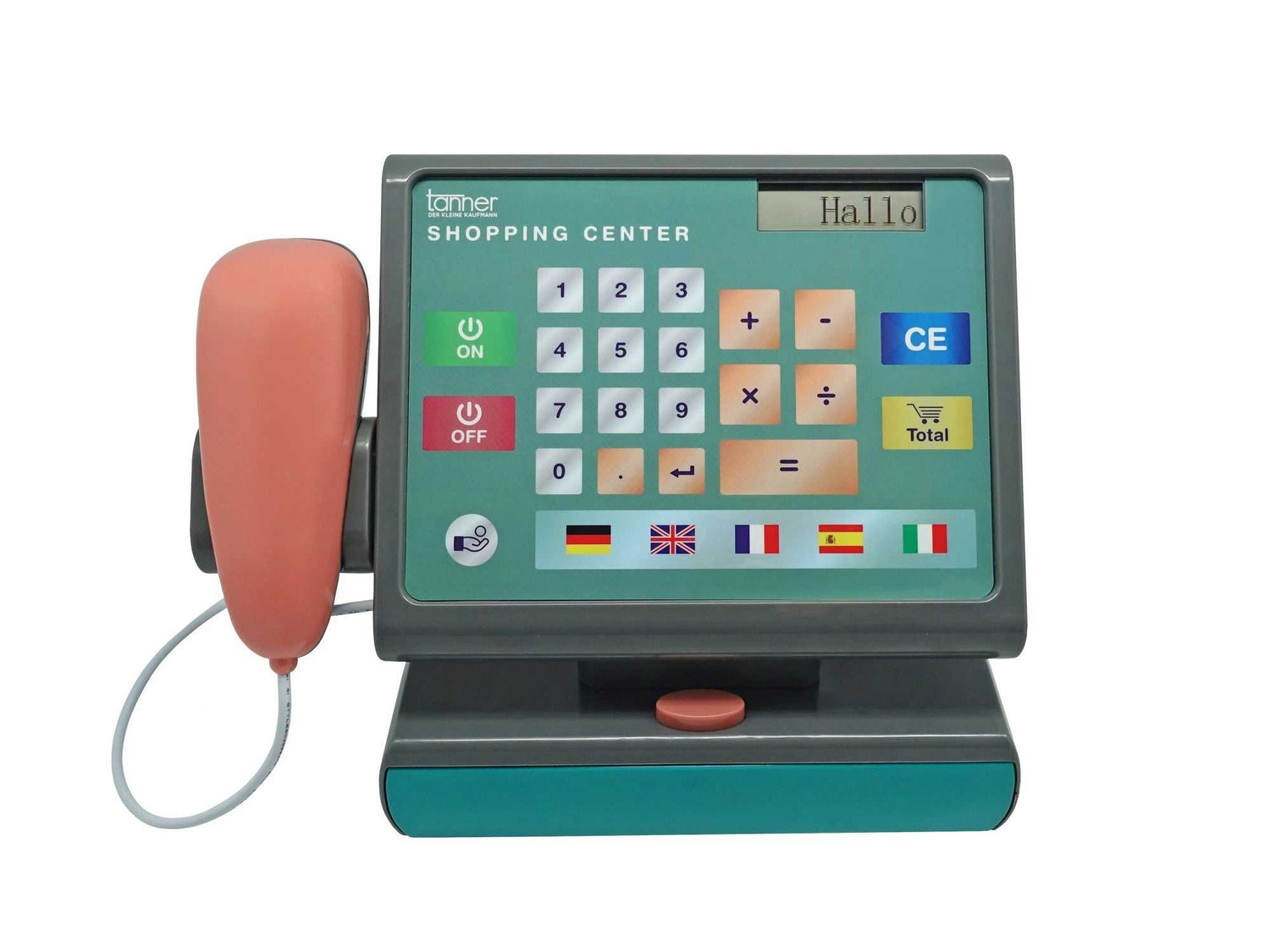 Zur Auswahl stehen Deutsch, Englisch, Französisch, Spanisch und Italienisch – ideal zum spielerischen Erlernen erster Fremdsprachen! Mit der „Total“-Taste berechnet die Kasse automatisch den Gesamtbetrag. Zusätzlich lassen sich Beträge addieren, subtrahieren, multiplizieren oder dividieren – ein echtes Lernspielzeug mit Mehrwert!