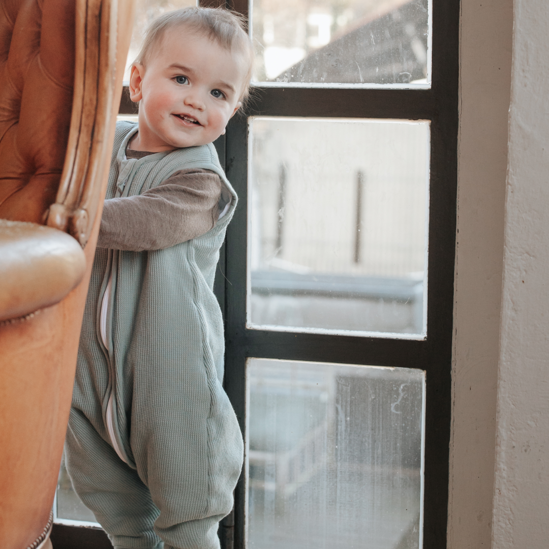 Der Schlafsack mit Umschlag-Füßen Essential Mint 90 cm (2.5 TOG) von Emma & Noah ist das ideale Produkt für einen sicheren und geborgenen Schlaf Deines Babys.