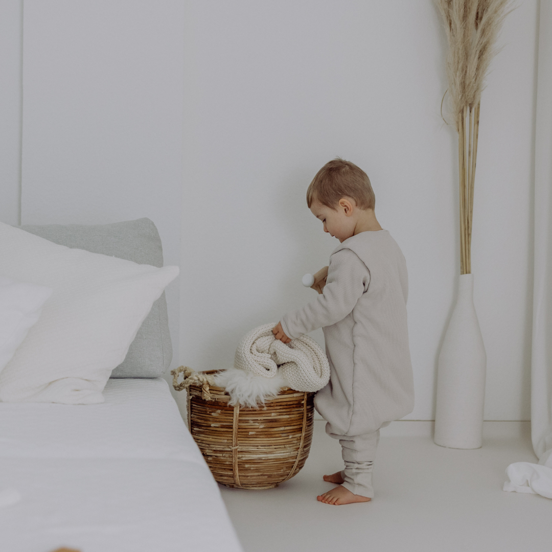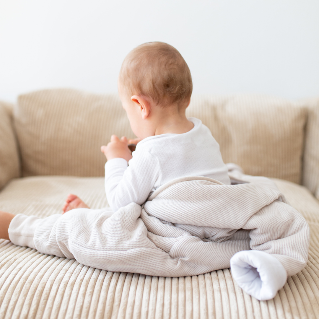 Der Schlafsack mit Umschlag-Füßen und Ärmeln | Essential Beige 70 cm (3.5 TOG) von Emma & Noah ist das ideale Produkt für einen sicheren und geborgenen Schlaf Deines Babys.