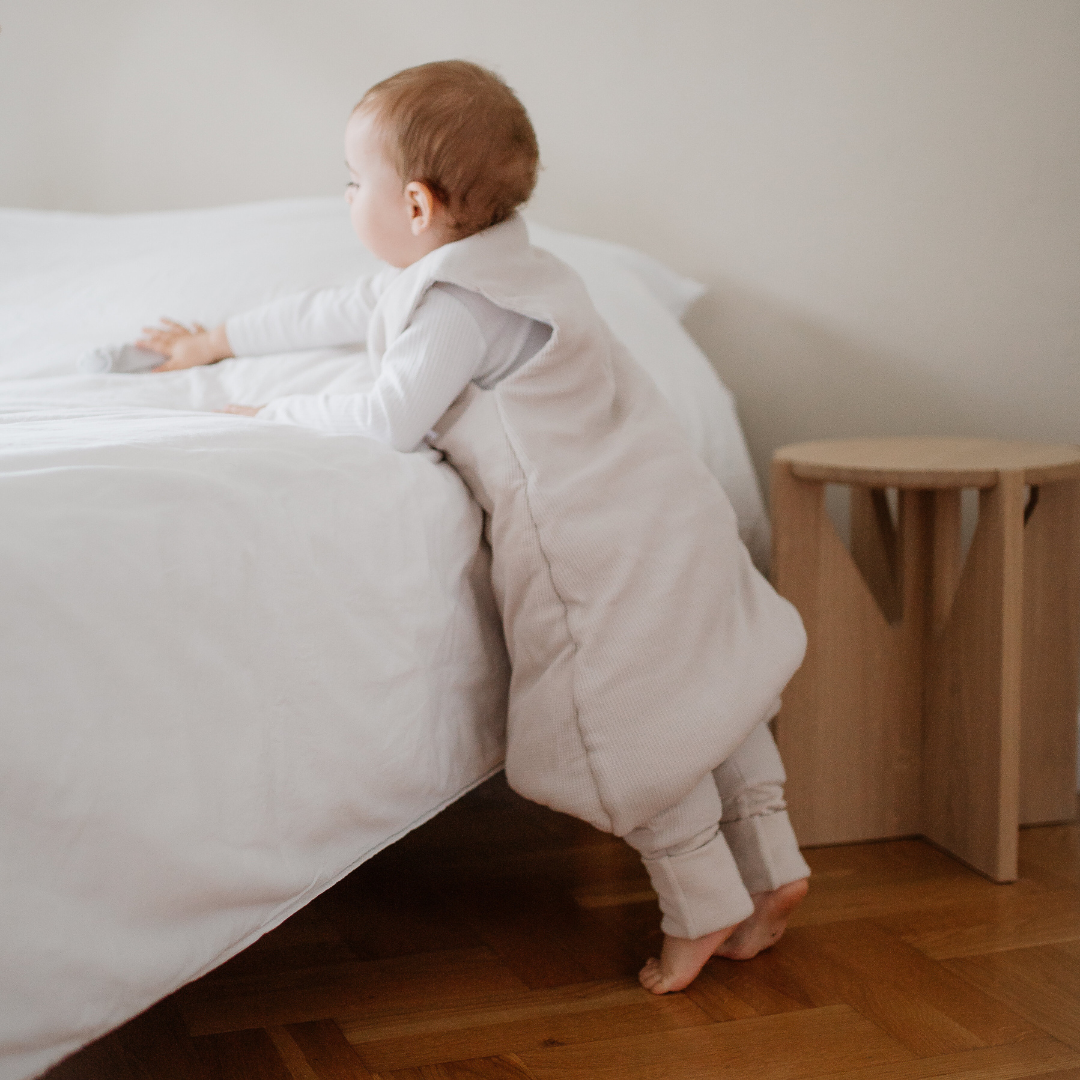 Der Schlafsack mit Umschlag-Füßen und Ärmeln | Essential Beige 80 cm (3.5 TOG) von Emma & Noah ist das ideale Produkt für einen sicheren und geborgenen Schlaf Deines Babys.