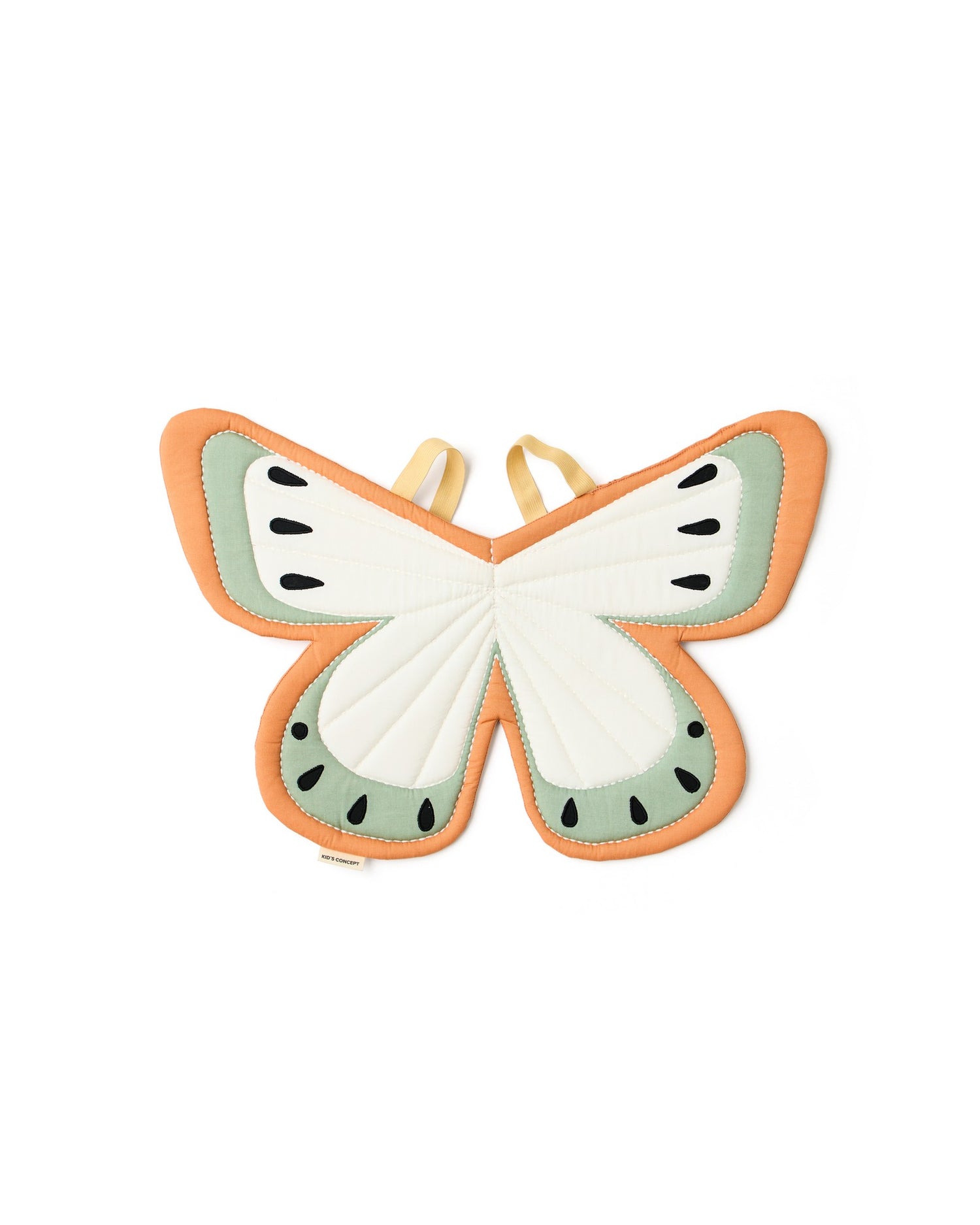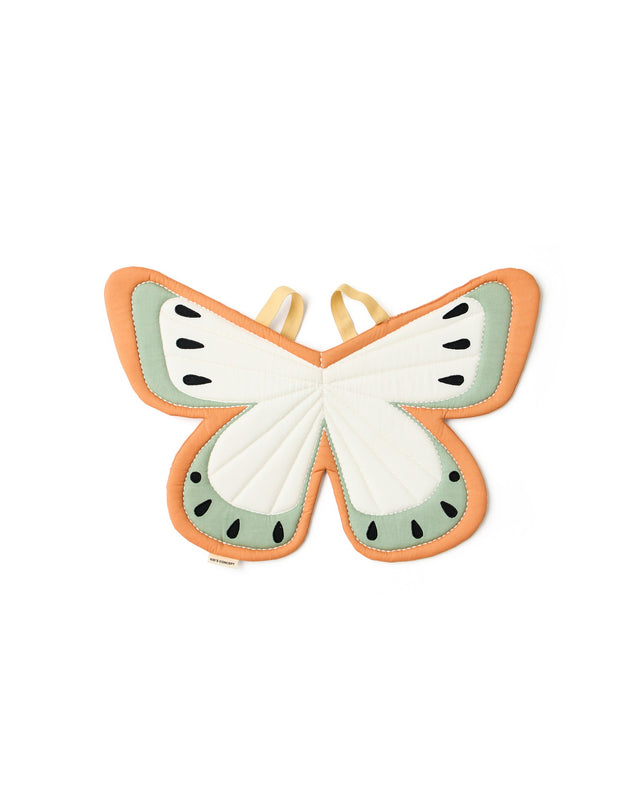 Mit diesem süßen Schmetterlingsflügeln von Kids Concept, kommt Schwung in die Verkleidungskiste. Schmetterlinge treiben auf einer sanften Brise, ihre zarten Flügel malen die Luft mit sanften Bewegungen. Diese Schmetterlingsflügel sind so konzipiert, dass sie mit elastischen Schulterriemen auf dem Rücken getragen werden können, was das Verkleiden einfach und bequem macht. Die Flügel sind gepolstert, damit sie beim Spielen ihre Form behalten, und die gestickten Details sorgen für Stabilität und Struktur. Beim Verkleidungsspiel können Kinder ihre Kreativität und ihre Fähigkeit, Geschichten zu erzählen, erforschen, und Flügel wie diese regen zu aktiver Bewegung an, wenn sie so tun, als würden sie fliegen. Das einfache Design macht es Kindern leicht, sich selbst anzuziehen, und unterstützt das eigenständige Spiel. Modell:1001014 Alter: 3 Jahre/ Farbe: Grün, Multi Schulterbänder: 32cm Größe (L x W x H in cm): 52 x 37.5 x 1 Material: Textil: 100% Organische Baumwolle /Füllung: Pu-foam/ Pflege: 30 Grad Schonwaschgang, nicht bügeln und nicht im Trockner trocknen. WARNUNG! Nicht geeignet für Kinder unter 3 Jahren.