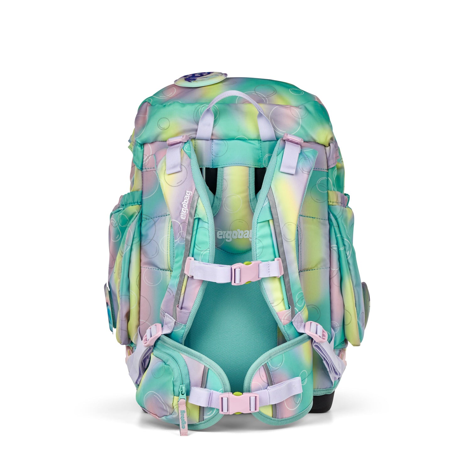 Sowohl die Schulterträger als auch der Beckengurt sind weich gepolstert. Selbst wenn ihr Kind jede Menge Schulsachen tragen muss, sitzt der Ergobag Maxi bequem am Rücken.