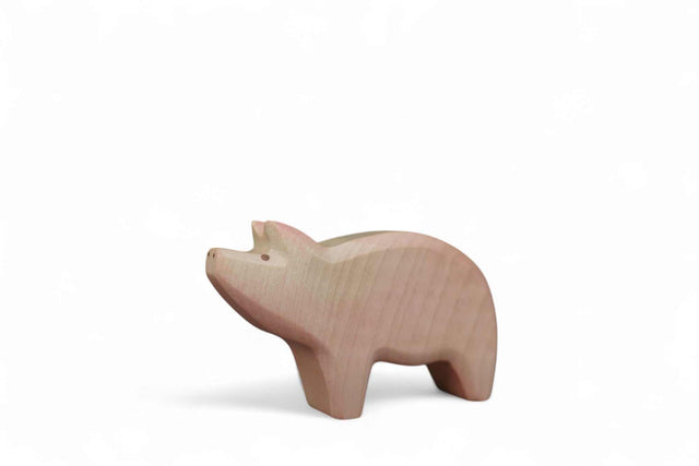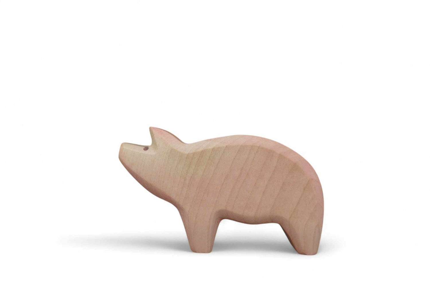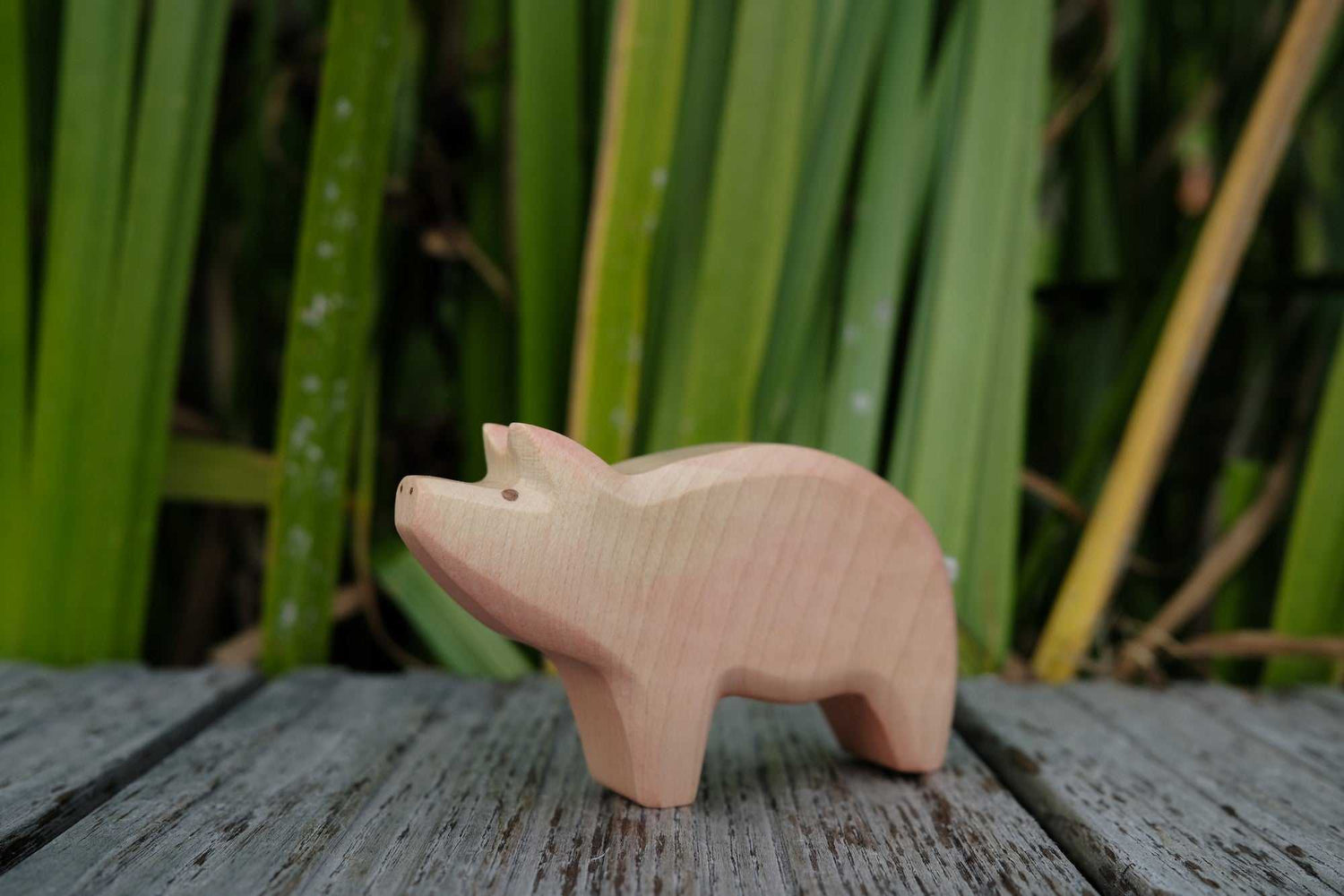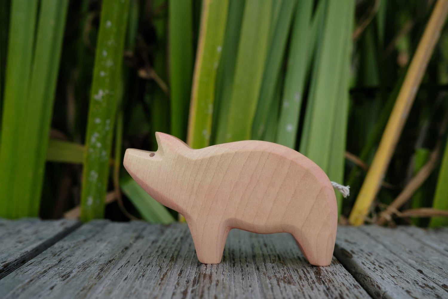 Das HolzWald Schwein gehört zu den Bauernhofbewohnern und fühlt sich dort sehr wohl.