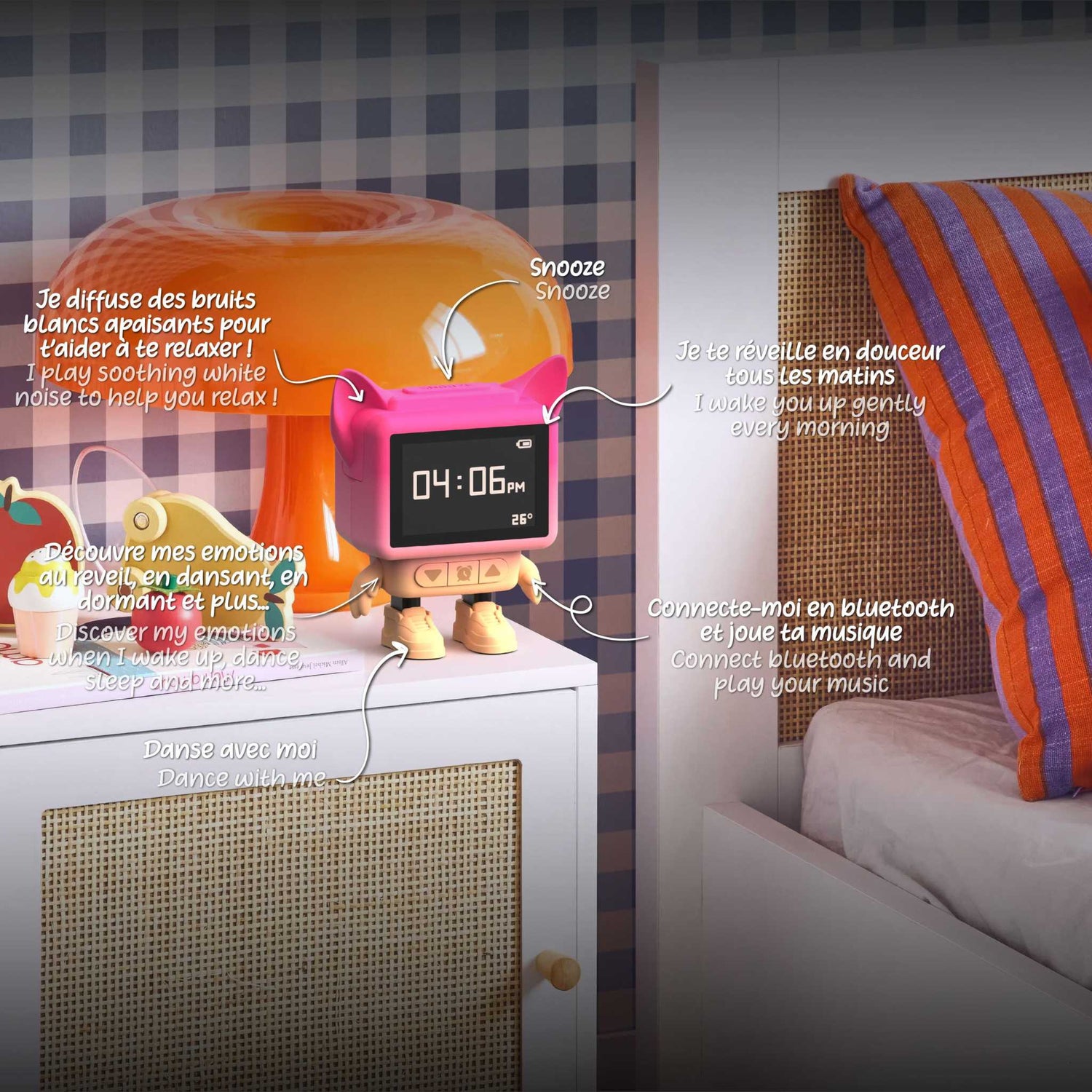 Wer sagt, dass Aufstehen langweilig sein muss? Die Dancing Clock bringt Bewegung in den Start in den Tag – mit tanzenden Bewegungen, fröhlichen Klängen und einem animierten Display, das garantiert gute Laune verbreitet. Ideal für Kinder und alle, die lieber mit einem Lächeln statt mit einem Brummen aufwachen.