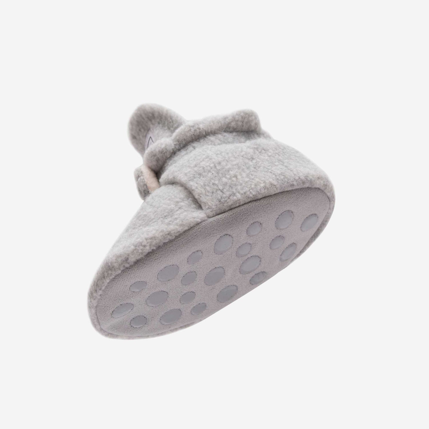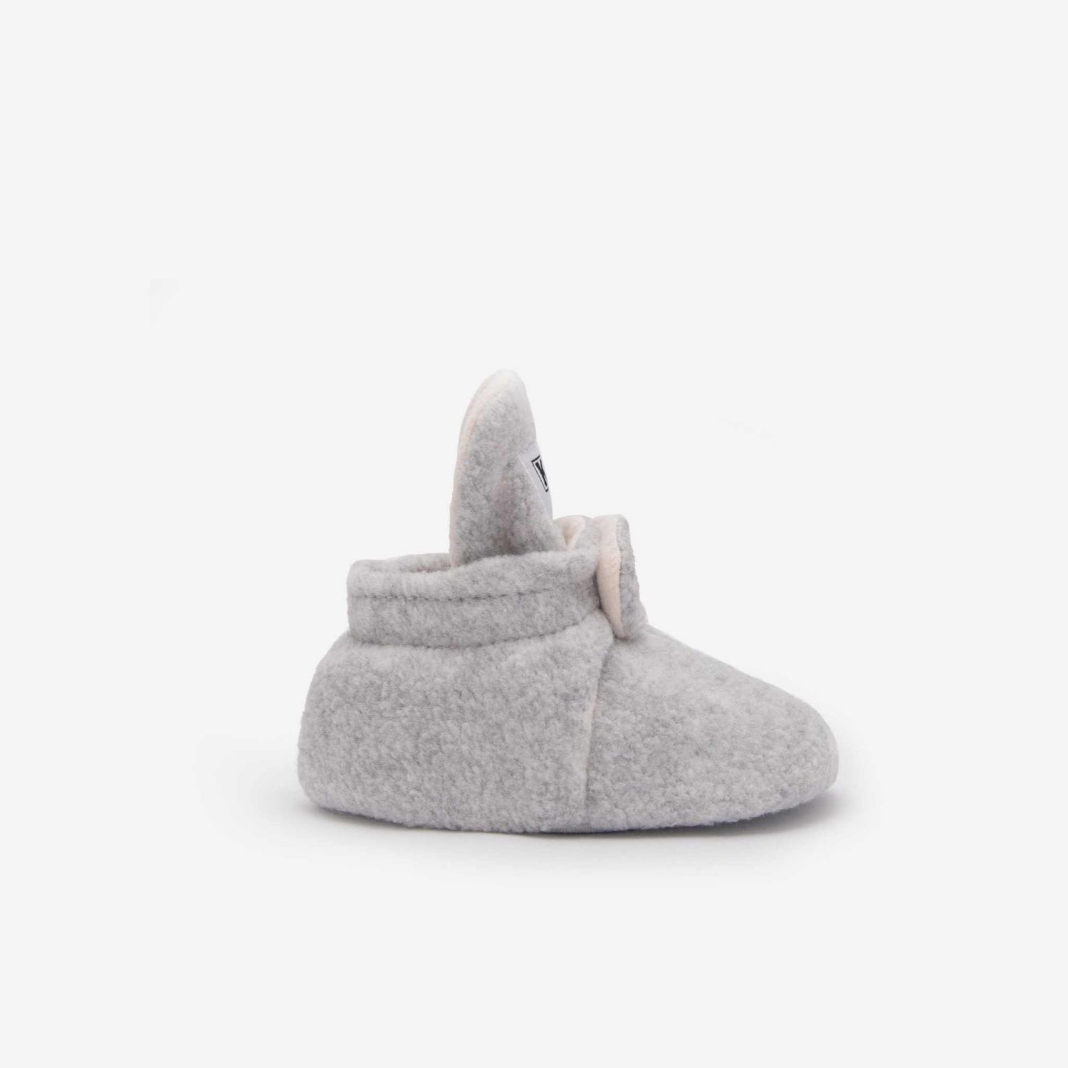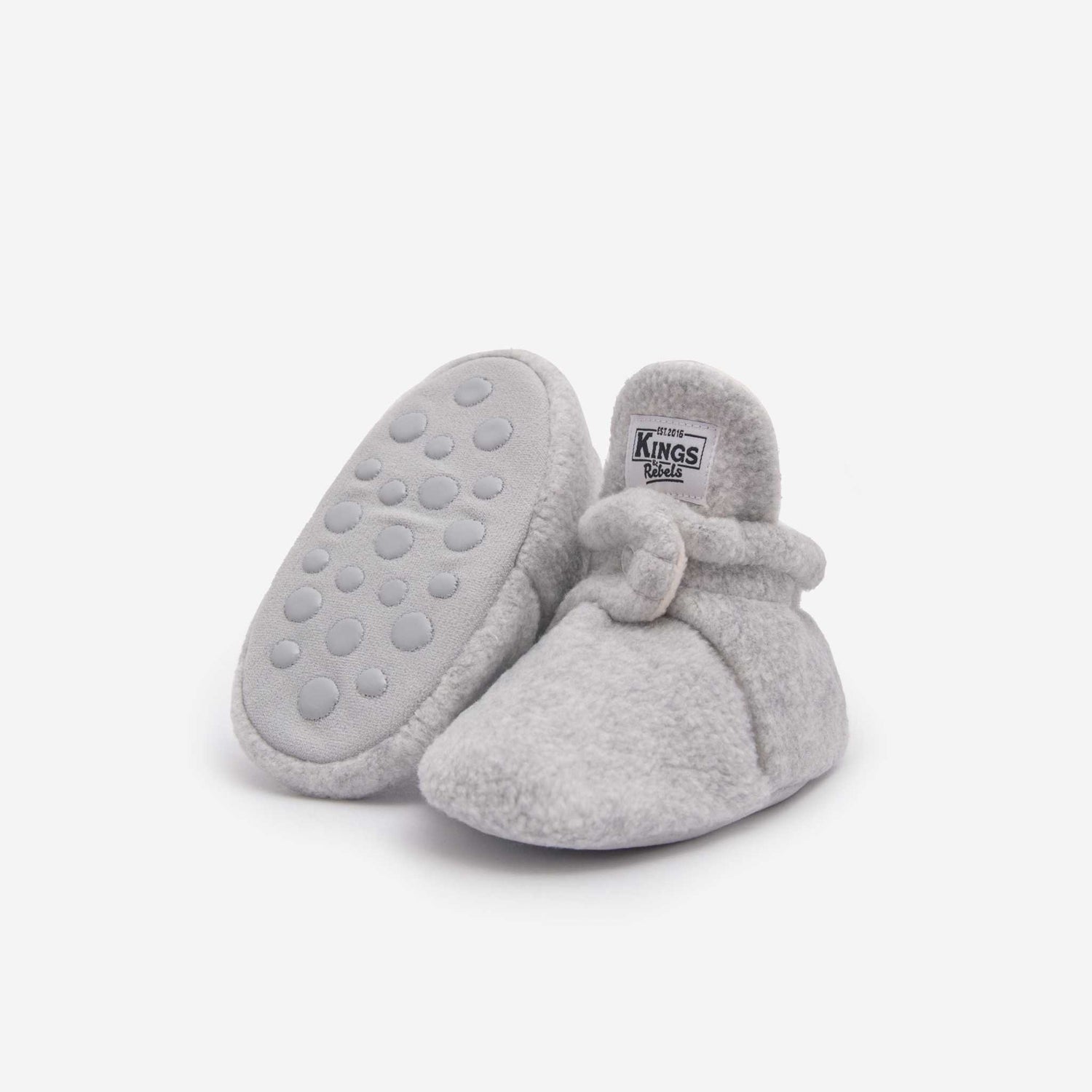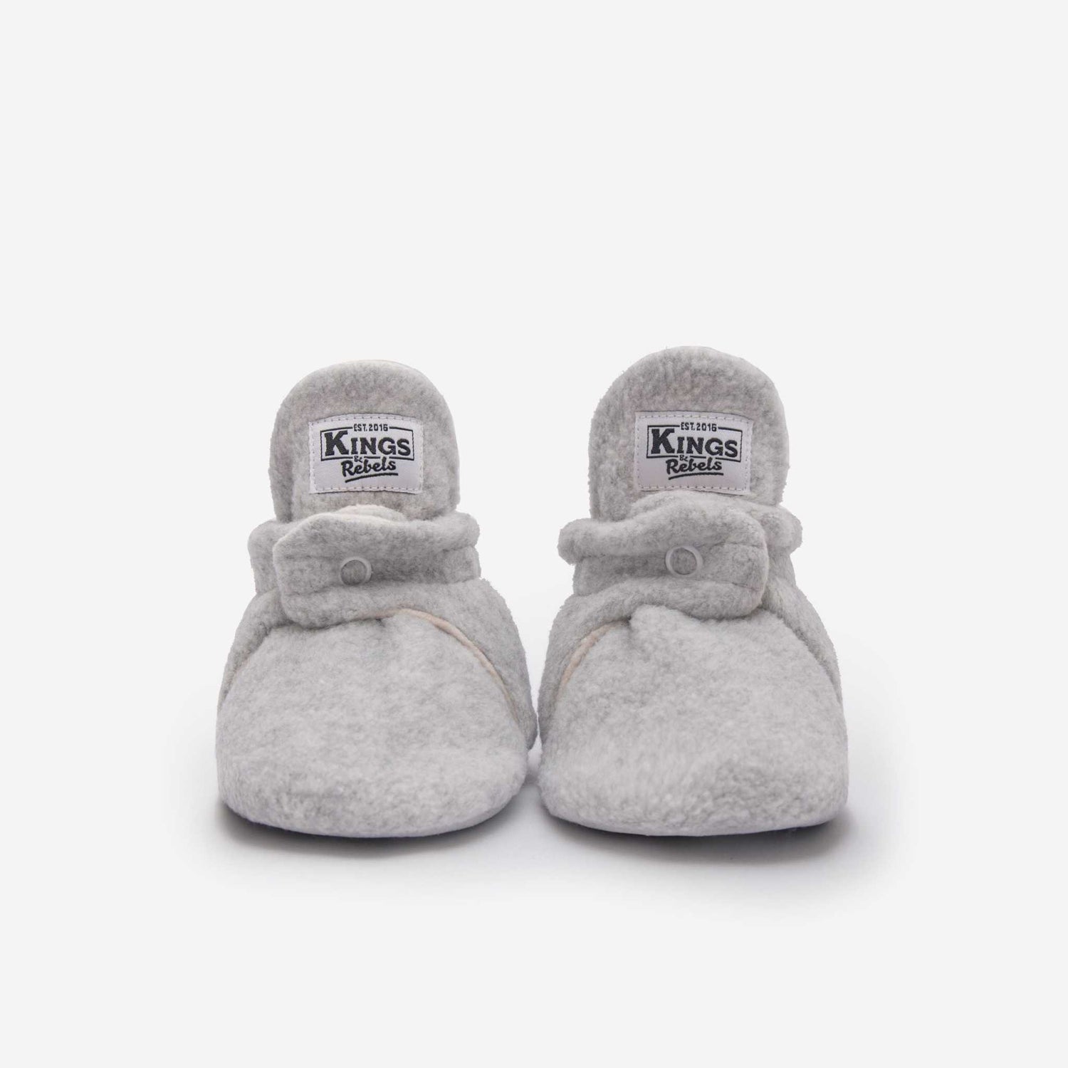 Die Kings & Rebels Baby Booties wurden mit einem einfachen und praktischen Druckknopf- Verschluss entworfen, was das Anziehen von strampelnden Babys in wenigen Sekunden ermöglicht. Der komplett um die Ferse verlaufende und über dem Knöchel sitzende, integrierte Gummizug verhindert auch bei sehr aktiven Babys das Herunterrutschen des Booties. Die Booties passen sich perfekt an die individuelle Form der Babyfüße an und schränken somit die natürliche Entwicklung der kleinen Babyfüße nicht ein. Alle Kings & Rebels Baby Booties werden in Handarbeit im eigenen Familienbetrieb hergestellt. ACHTUNG: Größe 12-24 Monate, Laufsohle mit Antirutsch- Noppen Farbe: Grey Innenmaterial: Fleece Außenmaterial: Teddy Fleece Größenübersicht: New Born (9 cm Länge) 3 Monate (10 cm Länge ) 6 Monate (11,5 cm Länge) 12 Monate (13 cm Länge) 18 Monate (14 cm Länge) 24 Monate (15 cm Länge)