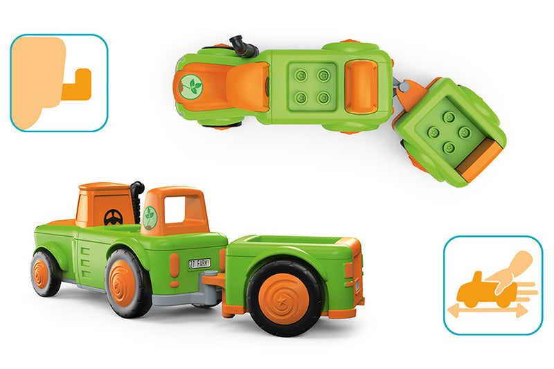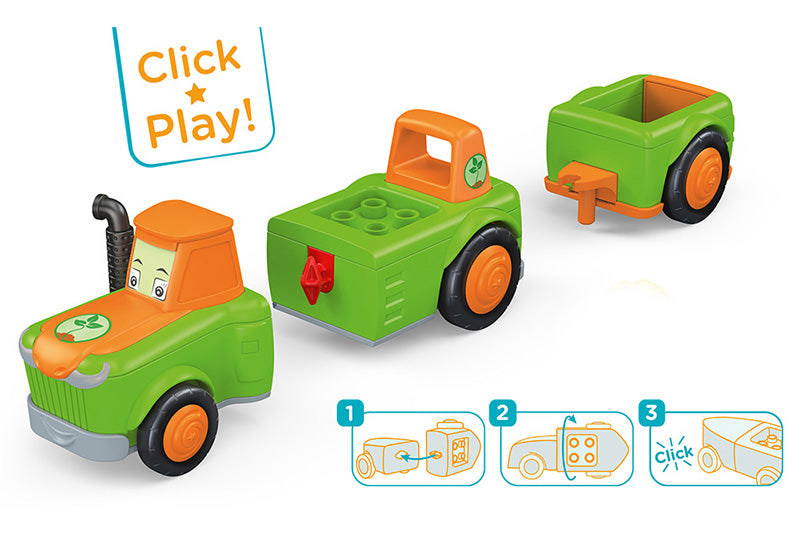 Die Spielfigur Frank Farmy, ist beweglich und das Fahrzeug lässt sich in 3 Teile zerlegen und kann mit anderen Toddys- Fahrzeugen kombiniert werden.