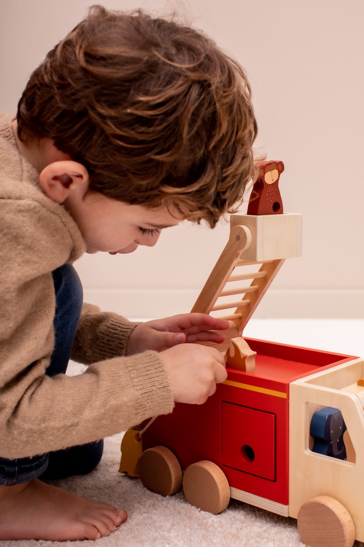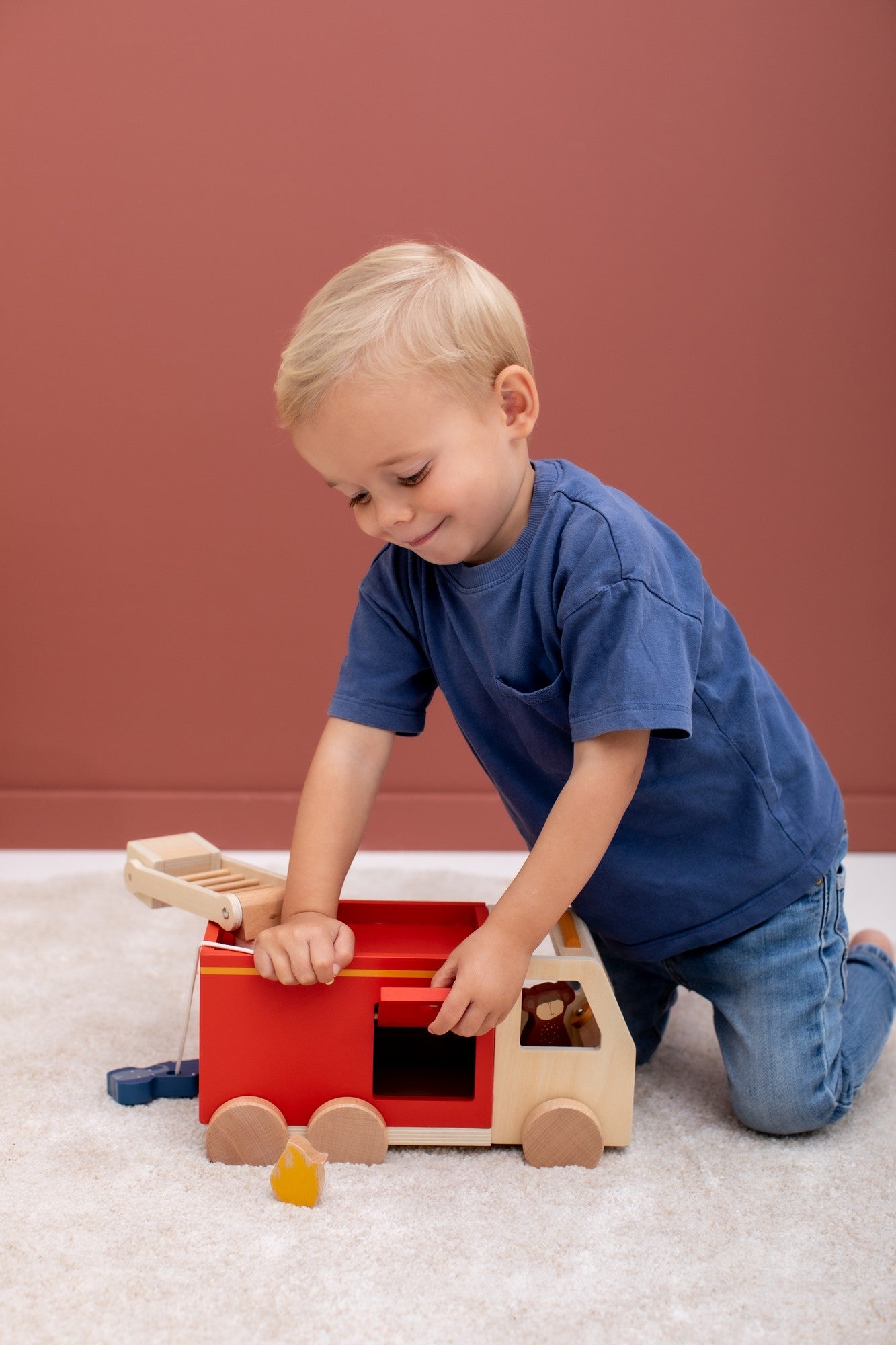 Mit dem Trixie Feuerwehrauto sind Brände im Nu gelöscht.