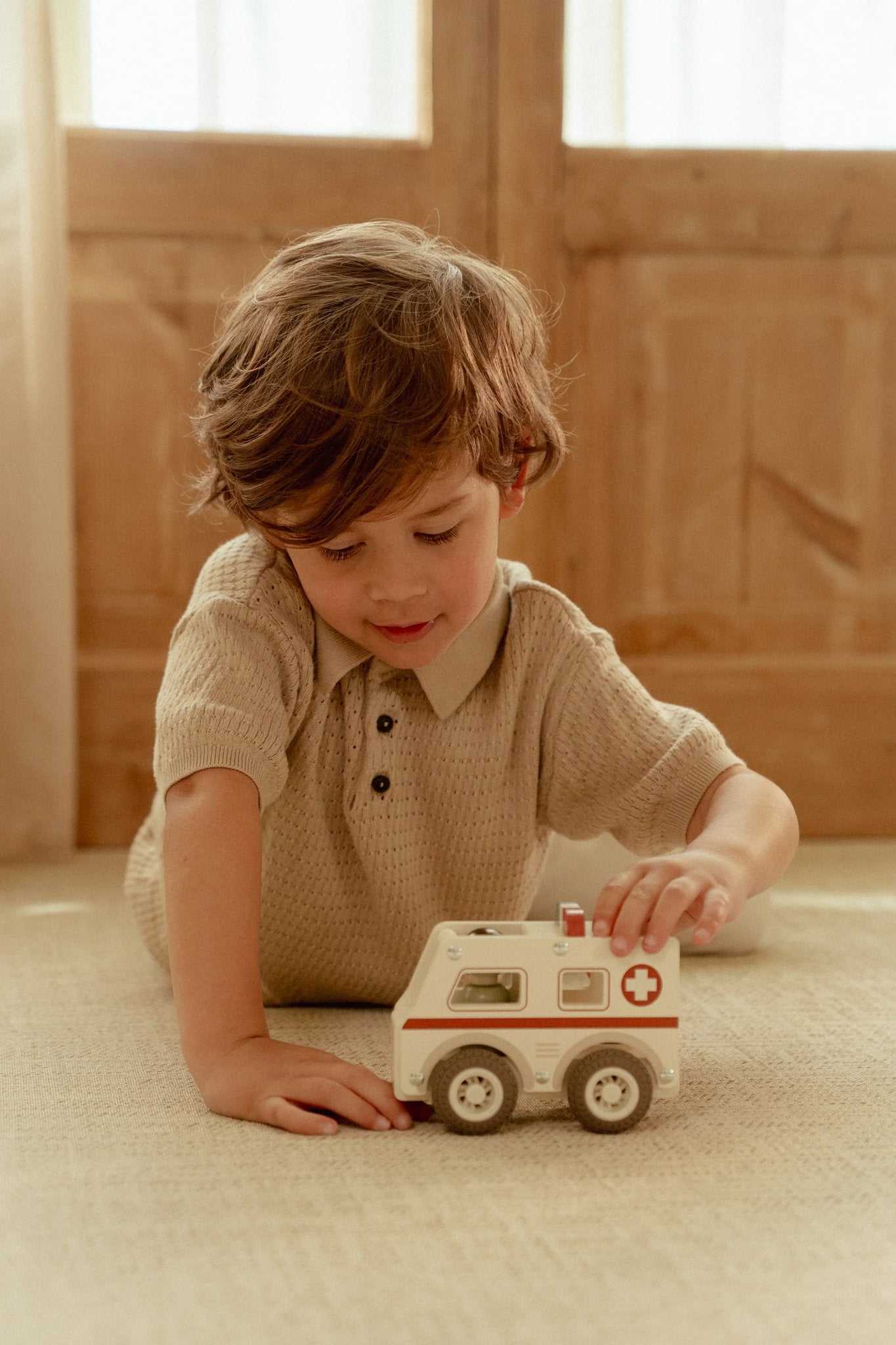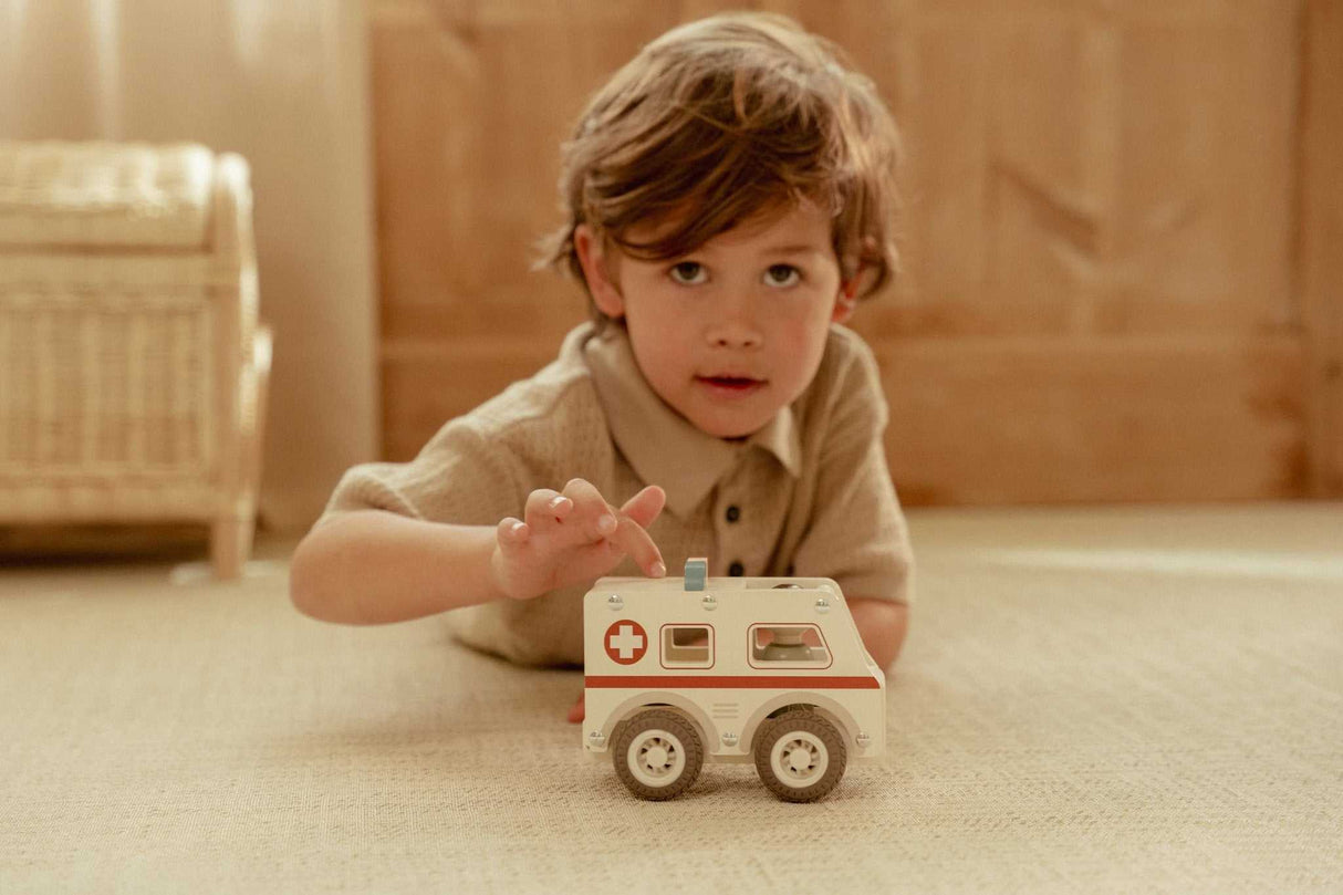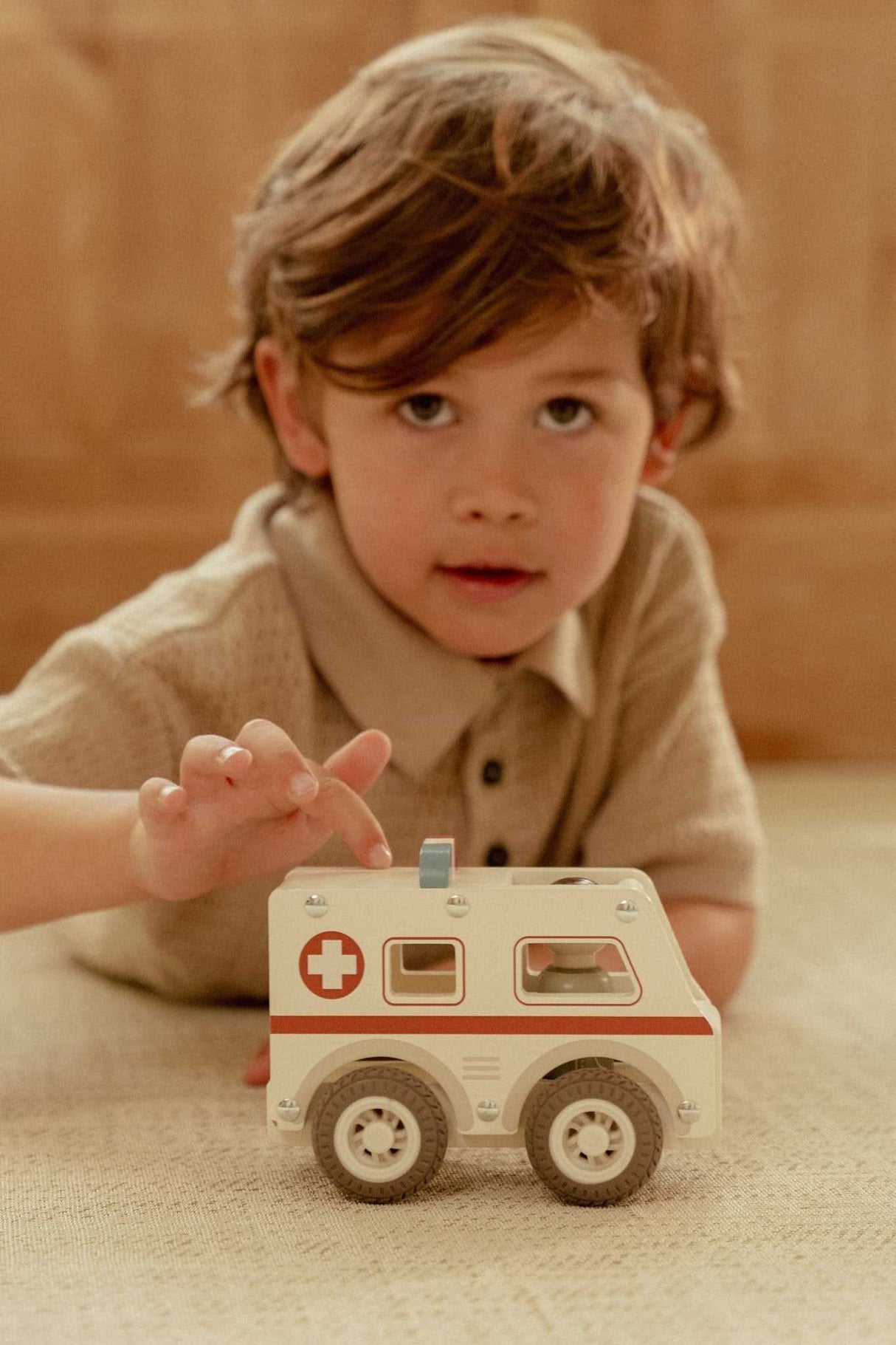 Sirene an, Zeit zu helfen! Diese Holz-Krankenwagen von Little Dutch mit Gummirädern bringt Patienten schnell ins Krankenhaus. Innen gibt es Platz für einen Patienten, und das Set enthält eine Holz-Krankenschwester. Fahre so schnell wie möglich zum Notfall, bringe den Patienten hinein und kümmere dich gut um alle. Dieses Krankenwagen-Spielzeug macht Rollenspiele noch spannender. Wirst du heute jemandem helfen? Modell: LD2527 Farbe: Multi Alter: Ab 18M+ Material: zertifiziertes Holz Produktgröße: 11x7,2x13,5cm Pflege: Mit einem feuchten Tuch abwischen. Achtung: Entfernen und entsorgen Sie vor Gebrauch alle Verpackungselemente, die nicht zum Spielzeug gehören und machen Sie die für Kinder unzugänglich. Überprüfen Sie die Struktur des Spielzeuges regelmäßig auf Beschädigungen. Falls Schaden oder Verschleiß erkannt werden, das Spielzeug nicht verwenden und für Kinder unzugänglich machen.