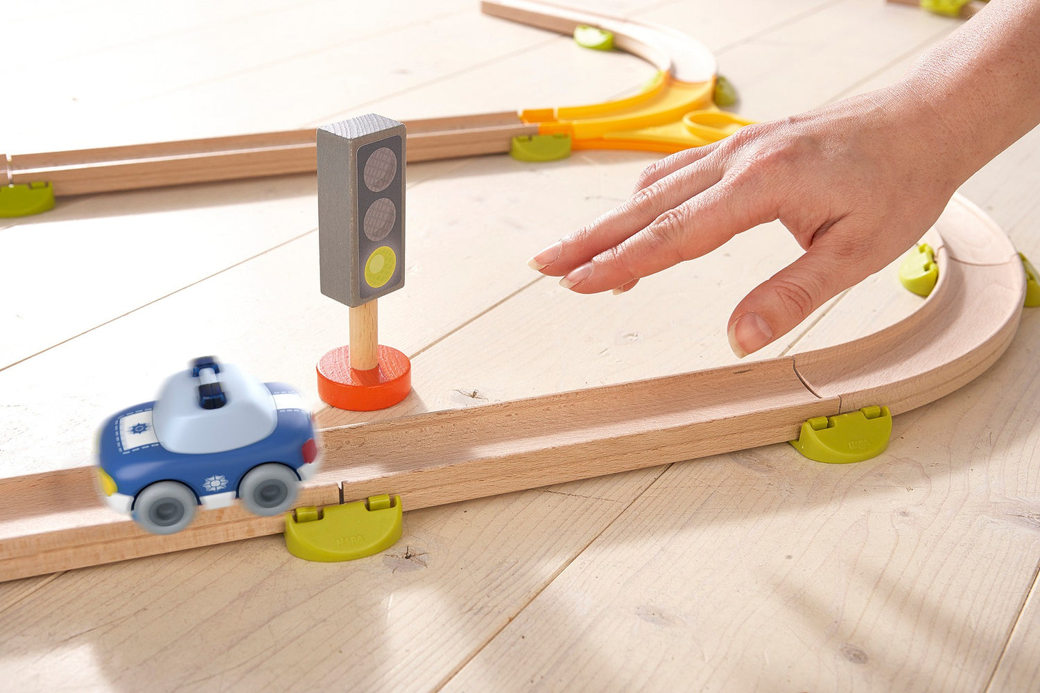 Das schnelle Polizeiauto bringt grenzenloses Kullervergnügen auf die Spielbahnen Kullerbü von HABA.