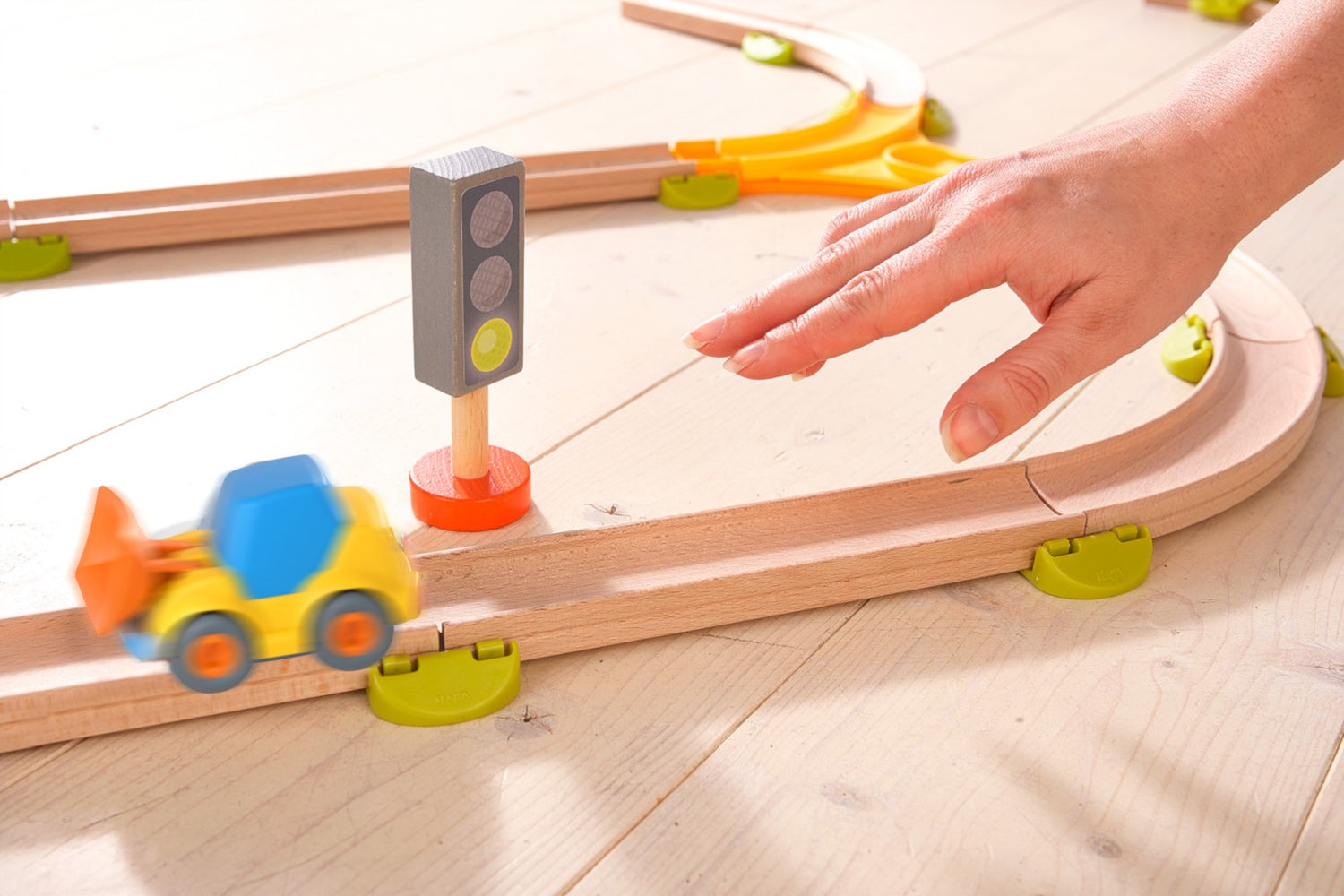 Der fleißige Radlader von HABA bietet grenzenlosen Kullerbü-Fahrspaß