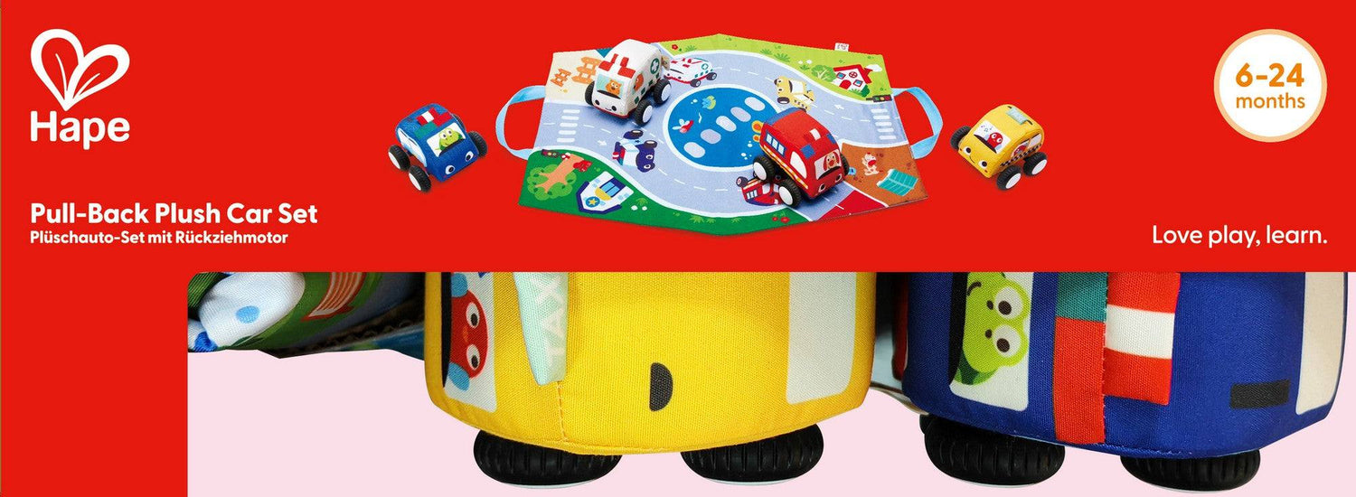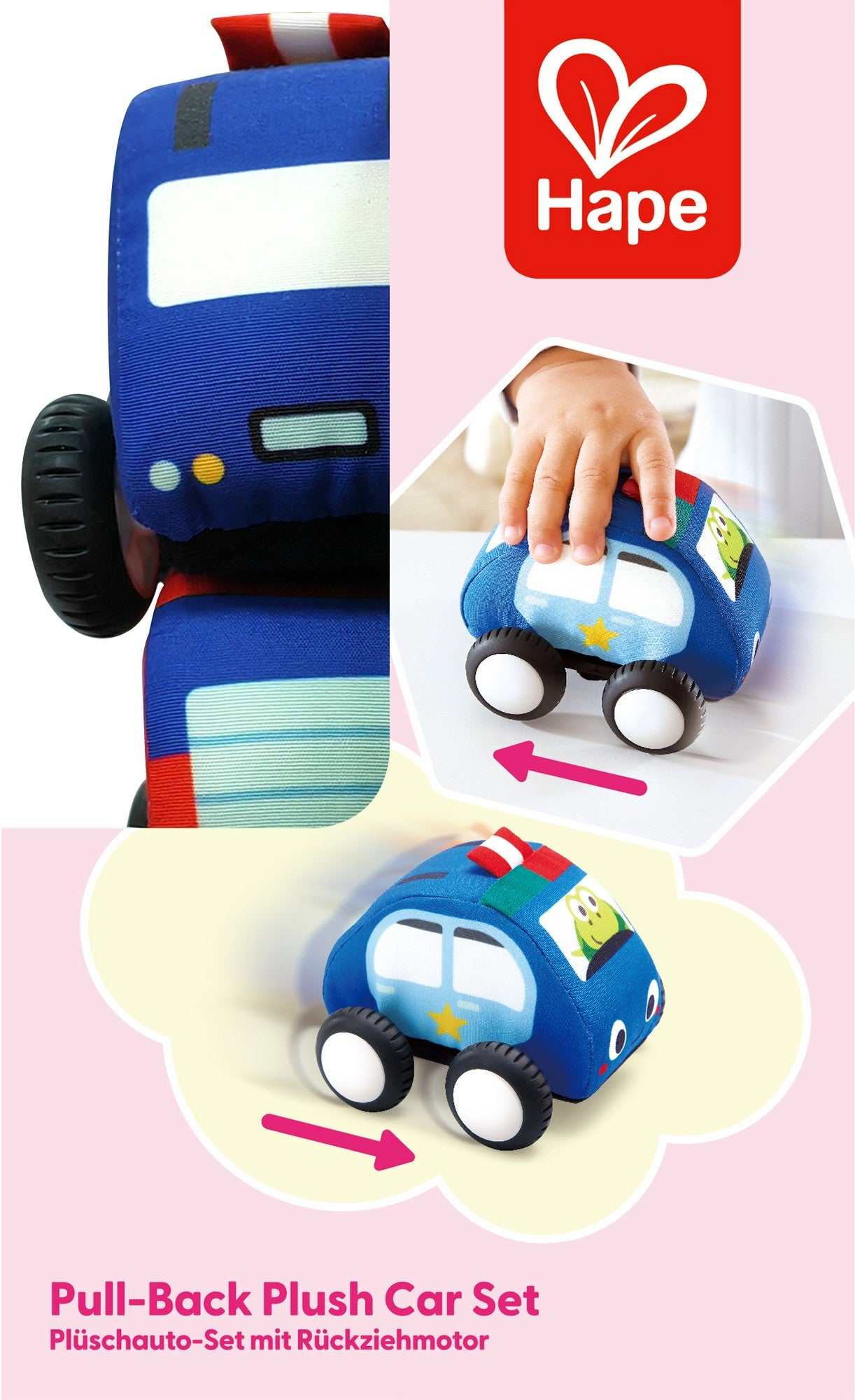 Das Plüschauto-Set mit Rückziehmotor von Hape ist das ideale Spielzeug für Kinder ab 6 Monaten, um stundenlangen Spaß und kreative Abenteuer zu erleben.