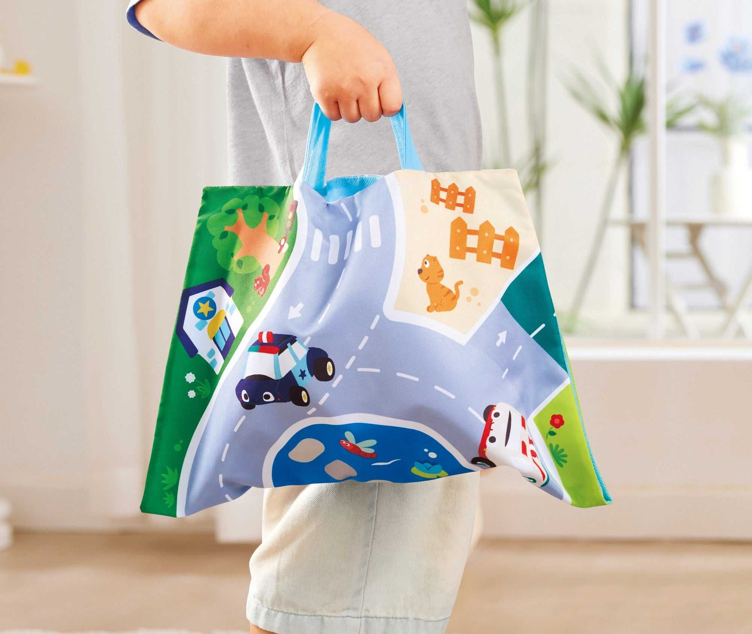 Die mitgelieferte Aufbewahrungstasche dient auch als Spielmatte zur Organisation der Fahrzeuge nach dem Spielen und fügt eine zusätzliche Dimension zum Spiel hinzu.
