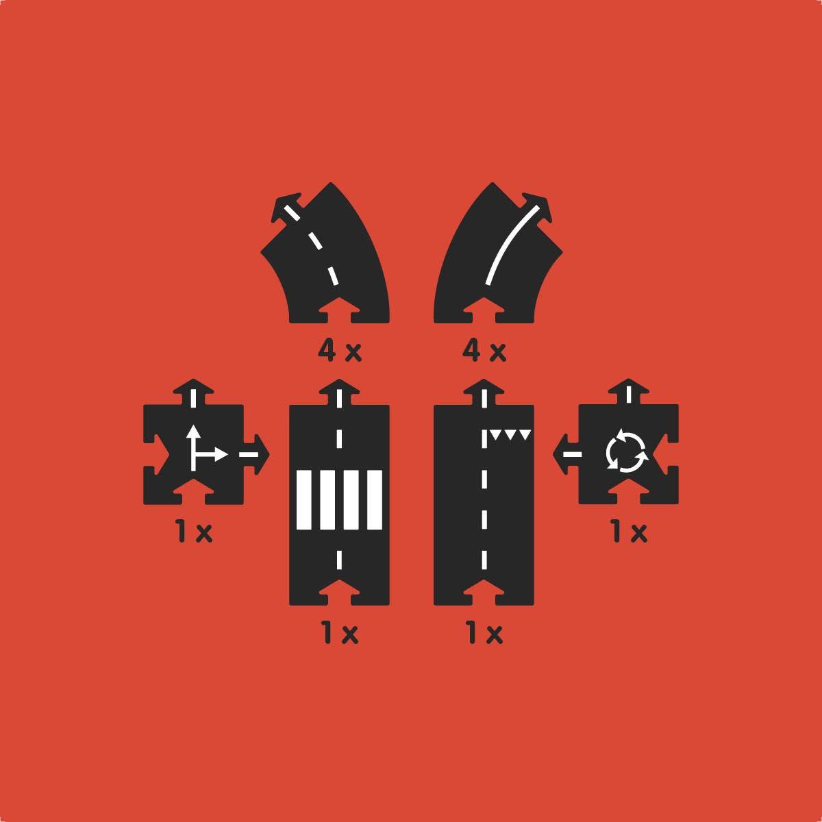 Die 12 Straßenteile bestehen aus, hochwertigem, biegsamen und absolut kindersicheren Gummi.