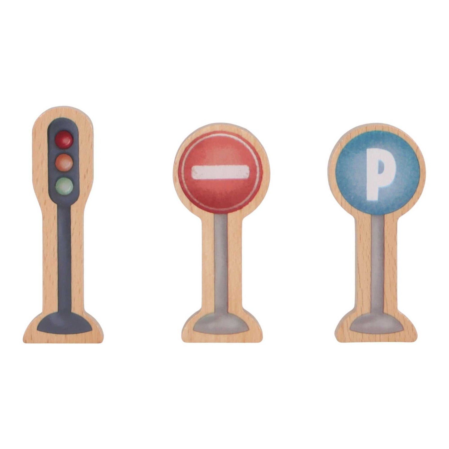 Das Set enthält zwei farbenfrohe Rennwagen, passende Fahrerfiguren, eine Ziellinie, Verkehrsschilder, ein Siegerpodest sowie eine goldene Trophäe. Die Kartonrennstrecke besteht aus einzelnen, robusten Puzzleteilen, die sich spielend leicht zusammensetzen lassen.