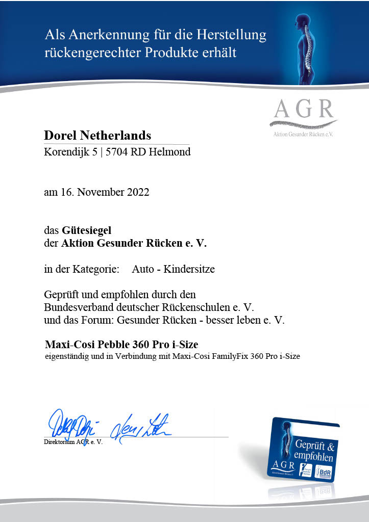 In Bezug auf die Sicherheit erfüllt die Pebble 360 Pro² die neuesten i-Size Sicherheitsstandards und bietet dank des G-CELL Seitenaufprallschutzes einen hervorragenden Schutz bei einem Seitenaufprall.