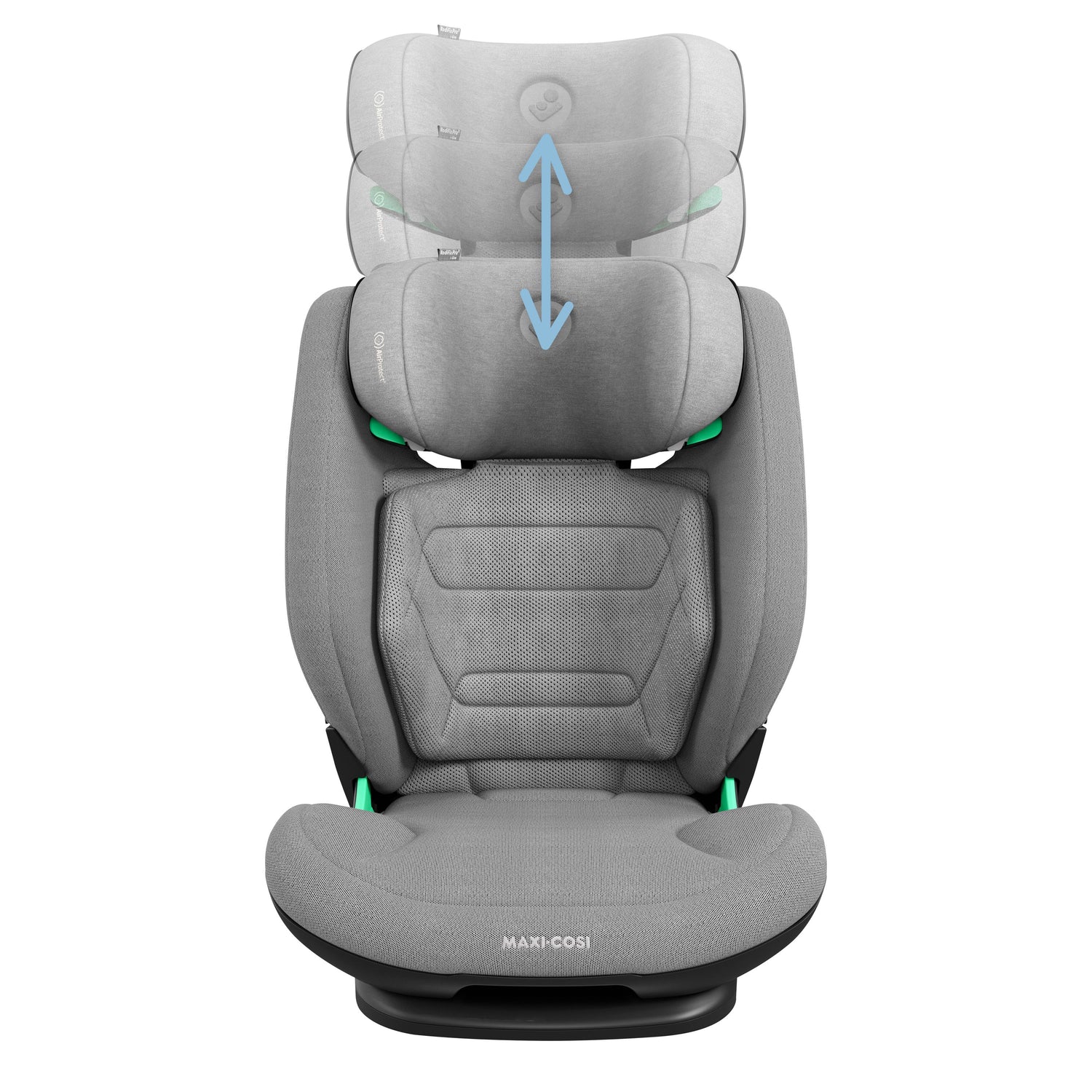 Der Kindersitz verfügt über eine verstellbare Kopfstütze und Rückenlehne, die mit dem Kind mitwachsen können.