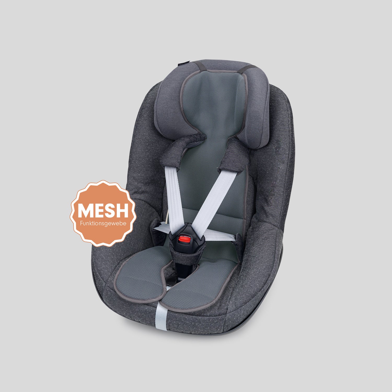 Die Sitzauflage COOLAIR von Priebes für Autositze 9 -18 kg verbindet Funktion und Hygiene in einem.