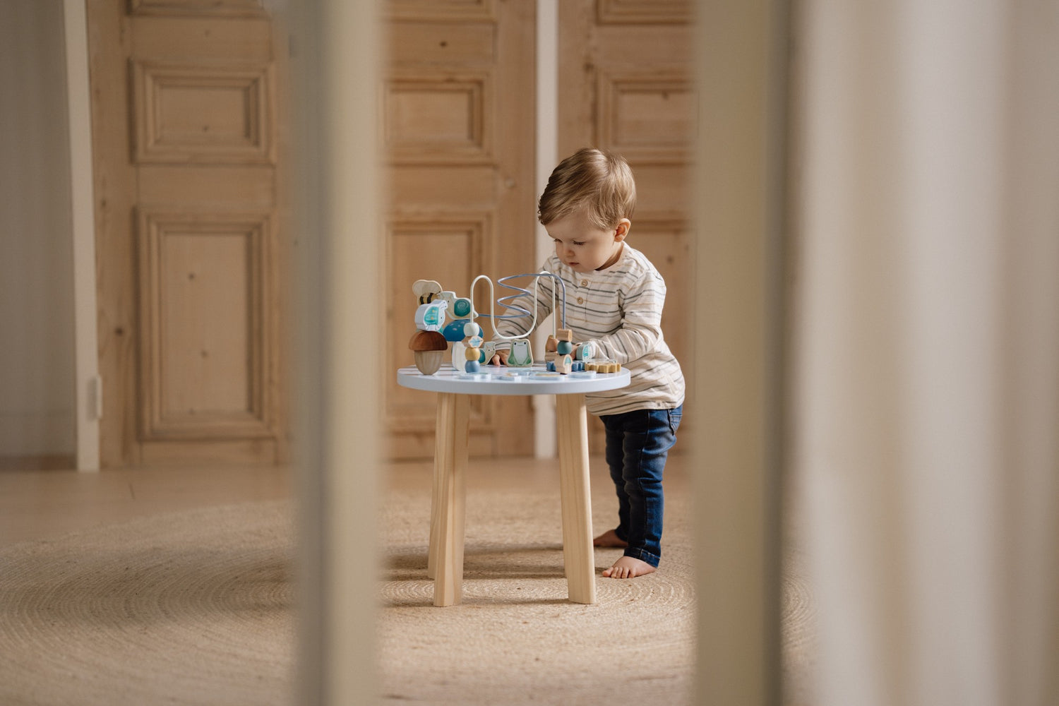 Dank des sicheren und ausgewogenen Designs fördert der Spieltisch auch das Aufstehen. Und zum Stehenbleiben! Denn die vielen Funktionen werden Ihr Kleinkind eine Weile beschäftigen.