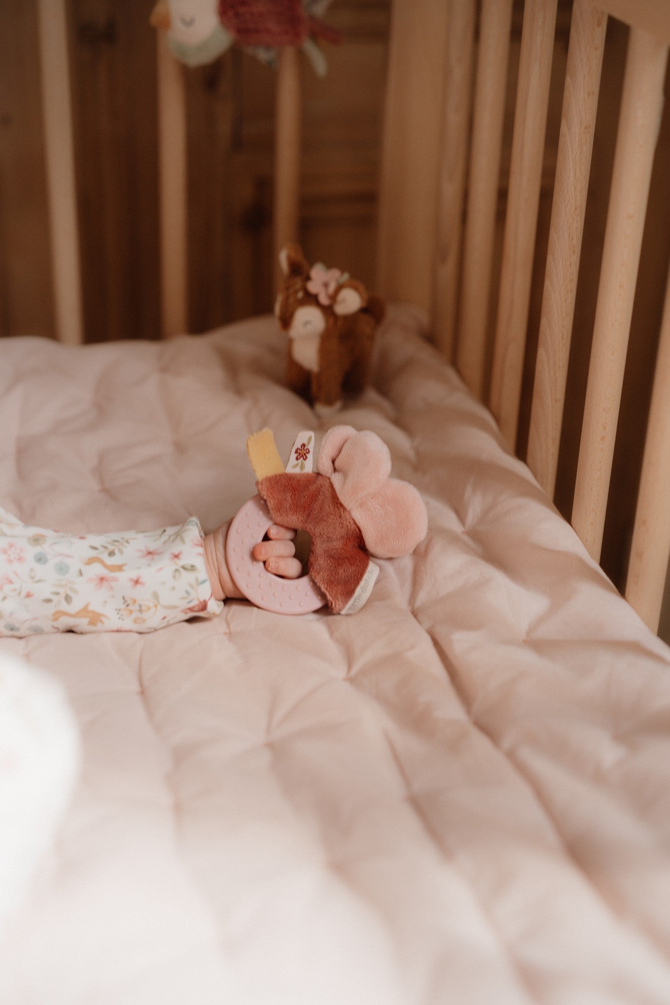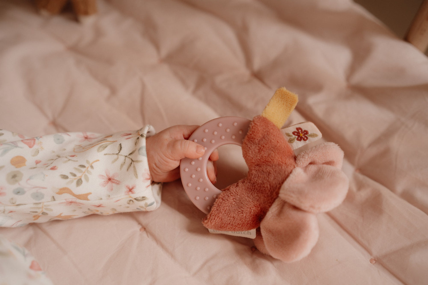 Das Little Dutch Geschenkset mit Plüschtieren aus der Fairy Garden-Kollektion ist eine wunderbare Geschenkidee für Babys oder zur Babyparty. Die Box enthält drei weiche Produkte, die zum Schlafen, Kuscheln und Spielen einladen. Das weiche Musselin-Schmusetuch mit dem zarten Vögelchen ist ideal zum Kuscheln und kann auch für das beliebte Spiel Guck-in-Guck verwendet werden. Das kuschelige Reh lädt zu großen Umarmungen und spannenden Spielabenteuern ein. Der enthaltene Beißring bietet beim Durchbruch der ersten Zähnchen Komfort und die niedliche Blume auf dem Ring fördert die Hand-Augen-Koordination und die Neugierde des Babys. Die Produkte sind sorgfältig in einer schönen Geschenkbox verpackt und bereit, Freude zu bereiten. Die Fairy Garden-Kollektion zeichnet sich durch ihre zarten Farben und niedlichen Designs aus, die sowohl Eltern als auch Babys begeistern. Das Geschenkset hat eine Größe von 28,5x28,5x11 cm und ist für Babys ab 0 Monaten geeignet. Die Farbe Pink dominiert die Kollektion und verleiht den Produkten eine süße und verspielte Note. Mit dem Geschenkset mit Plüschtieren aus der Fairy Garden-Kollektion machen Sie garantiert jedem Baby eine Freude. Die hochwertigen Materialien, die liebevollen Details und die vielseitigen Einsatzmöglichkeiten der Produkte machen sie zu einem unverzichtbaren Begleiter in den ersten Lebensmonaten. Überraschen Sie frischgebackene Eltern mit diesem zauberhaften Geschenkset und bereiten Sie dem Baby eine Welt voller Geborgenheit und Spaß. Die Fairy Garden-Kollektion steht für Qualität, Design und Funktionalität - überzeugen Sie sich selbst von der Magie dieser Produkte.