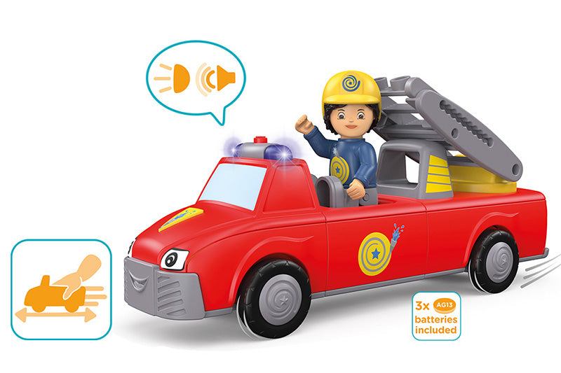 Ein hochwertiges und spannendes Spielzeug von Siku mit Schwungradmotor. Die Spielfigur Harry ist beweglich: Der Kopf lässt sich drehen, die Arme lassen sich heben und die Beine können angewinkelt werden. Die Toddy Spielzeuge fördern die Feinmotorik, Ausdauer und Geduld und bietet jede Menge Spielspaß. Das Fahrzeug Helpy lässt sich in drei Teile zerlegen und mit weiteren Toddys-Fahrzeugen kombinieren. Harry Helpy ist kompatibel mit Bausteinen anderer Hersteller. Licht- und Soundeffekte zur Unterstützung der Fahrzeugcharakteristik. Die drehbare und ausziehbare Leiter fördert zusätzlich das Spielerlebnis. ACHTUNG: 3 Knopfzellen Typ V13GA bzw. LR44 werden benötigt- NICHT im Lieferumfang enthalten Design Made in Germany. Modell: 0144 Maße: 29,5 x 14,5 x 17 cm Altersempfehlung: 24 Monate Material: Kunststoff (frei von Weichmachern und chemischen Stoffen) Achtung! Nicht für Kinder unter 36 Monaten geeignet. Enthält verschluck bare Kleinteile. Benutzung unter unmittelbarer Aufsicht von Erwachsenen.