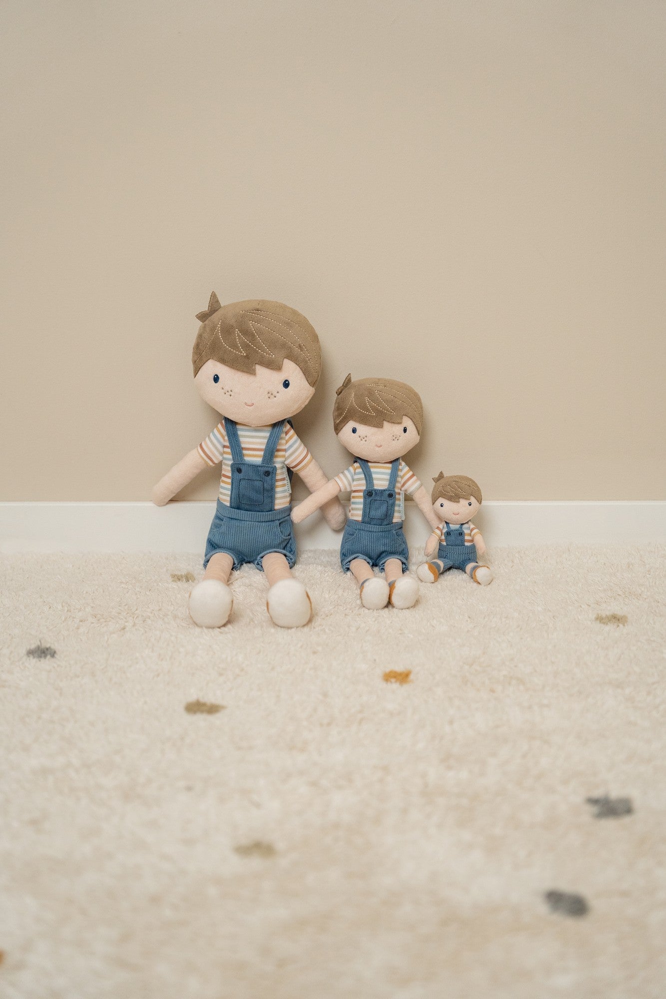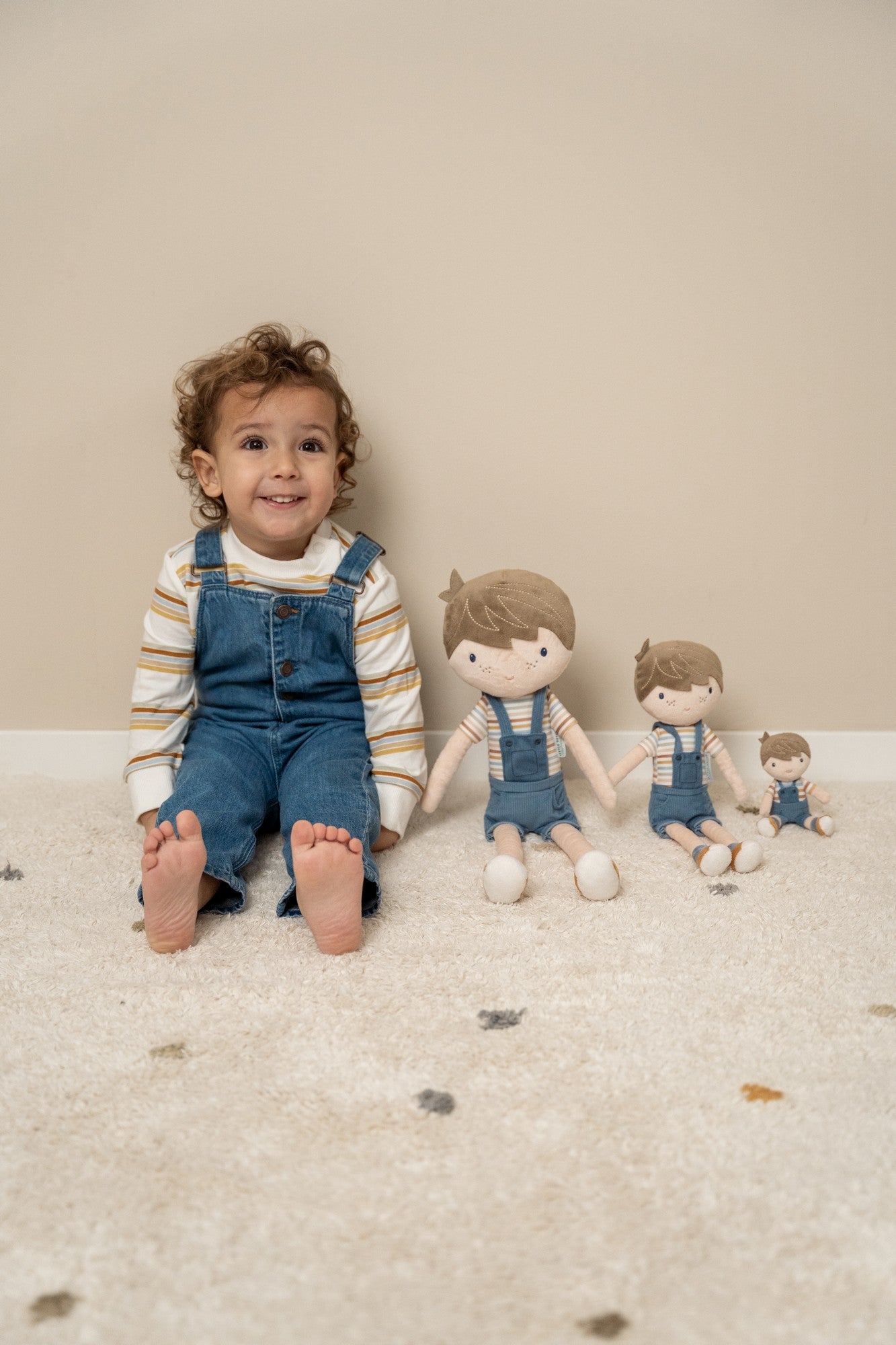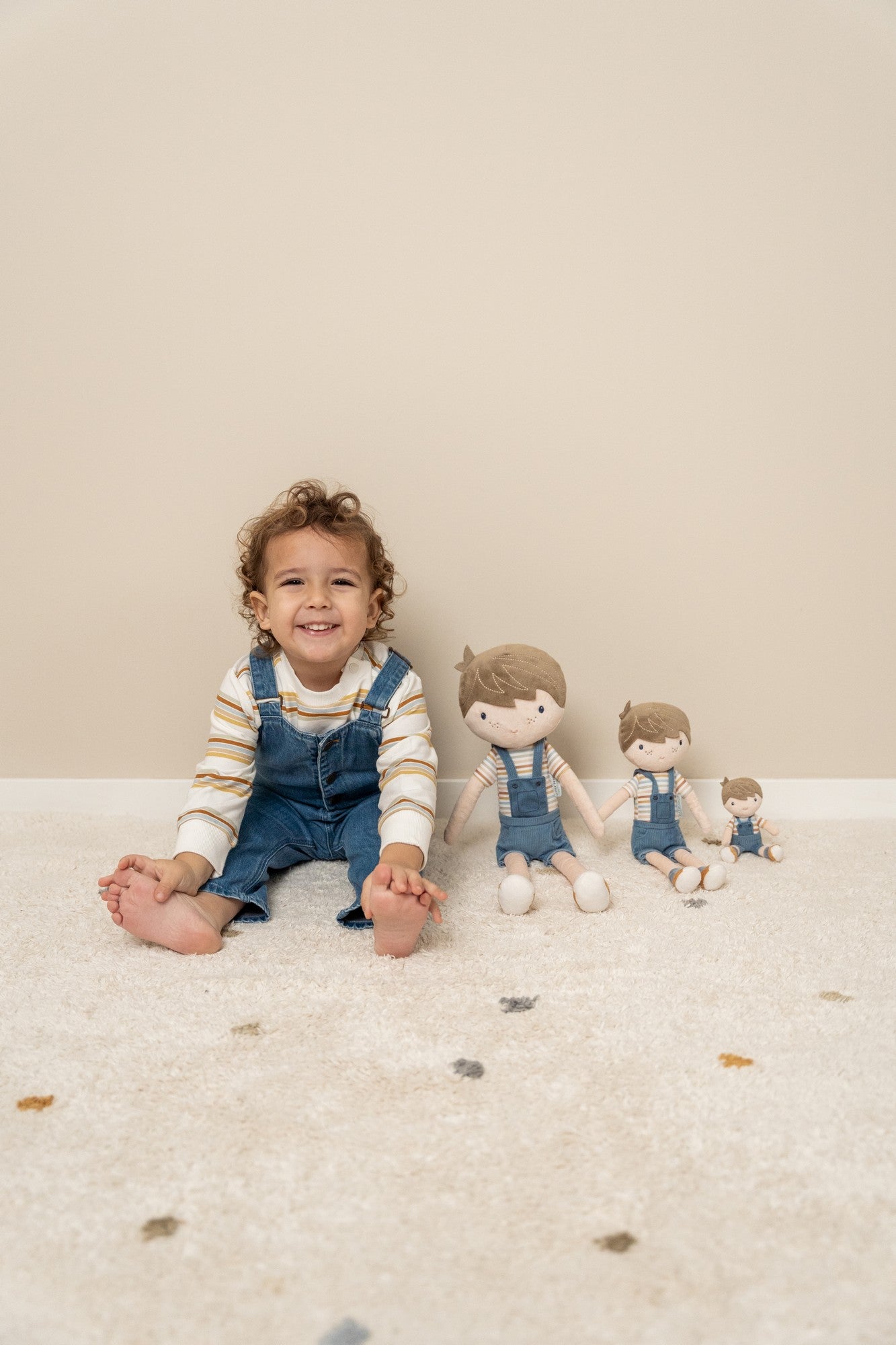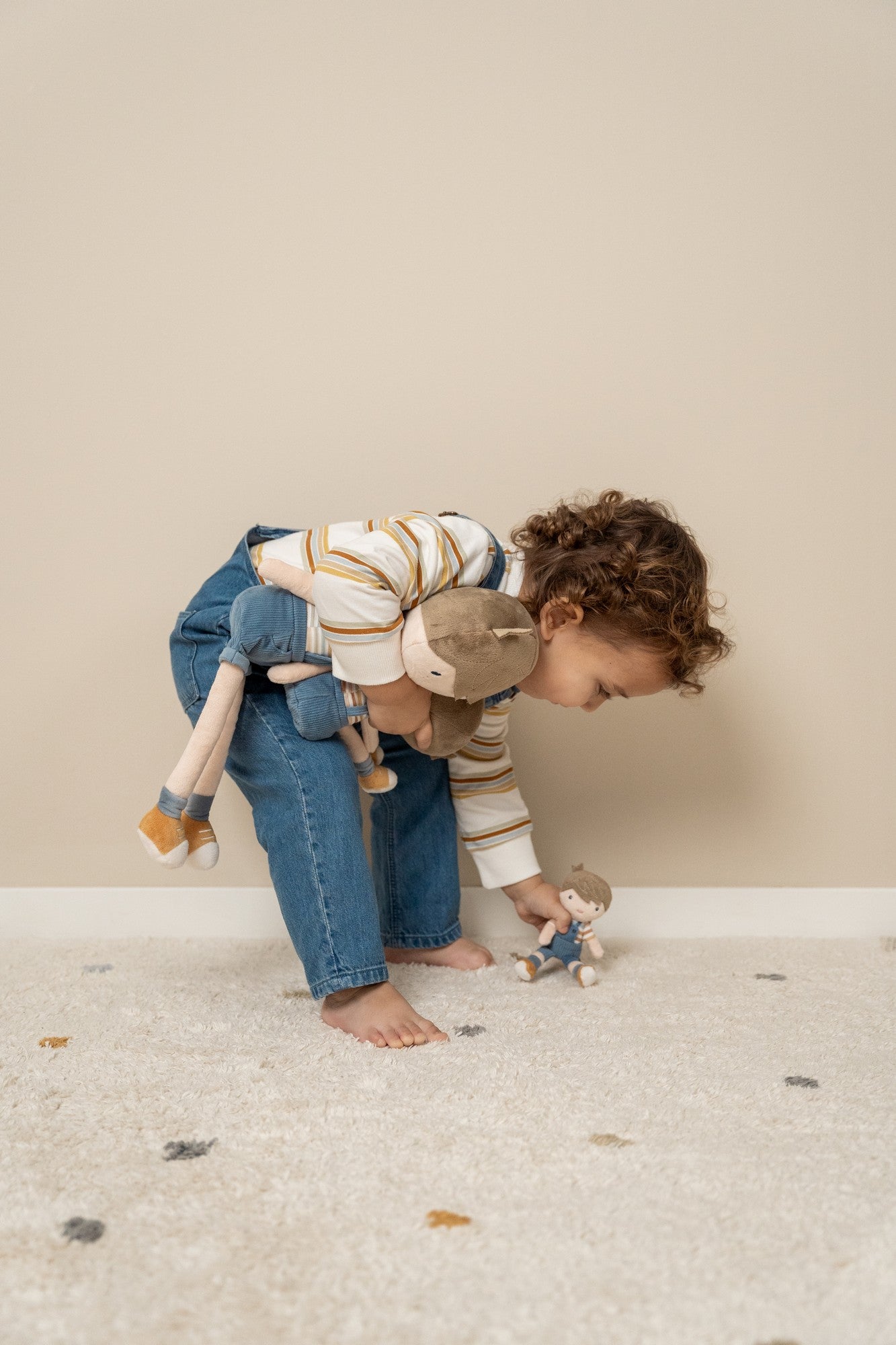 Diese entzückende Plüschpuppe von Little Dutch in einem niedlichen Gartenkostüm ist bereit für liebevolle Umarmungen.