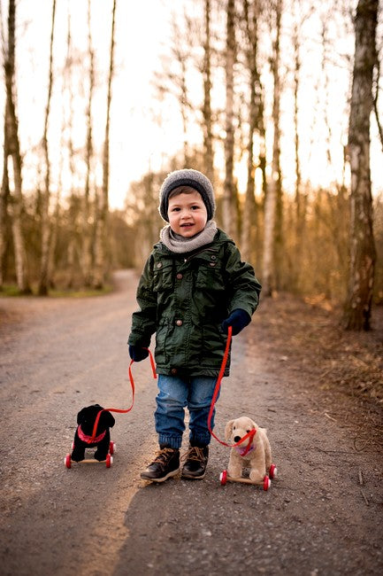 Labrador Luzie auf Holzrollen ist auf Lager und wird versandt, sobald es wieder verfügbar ist