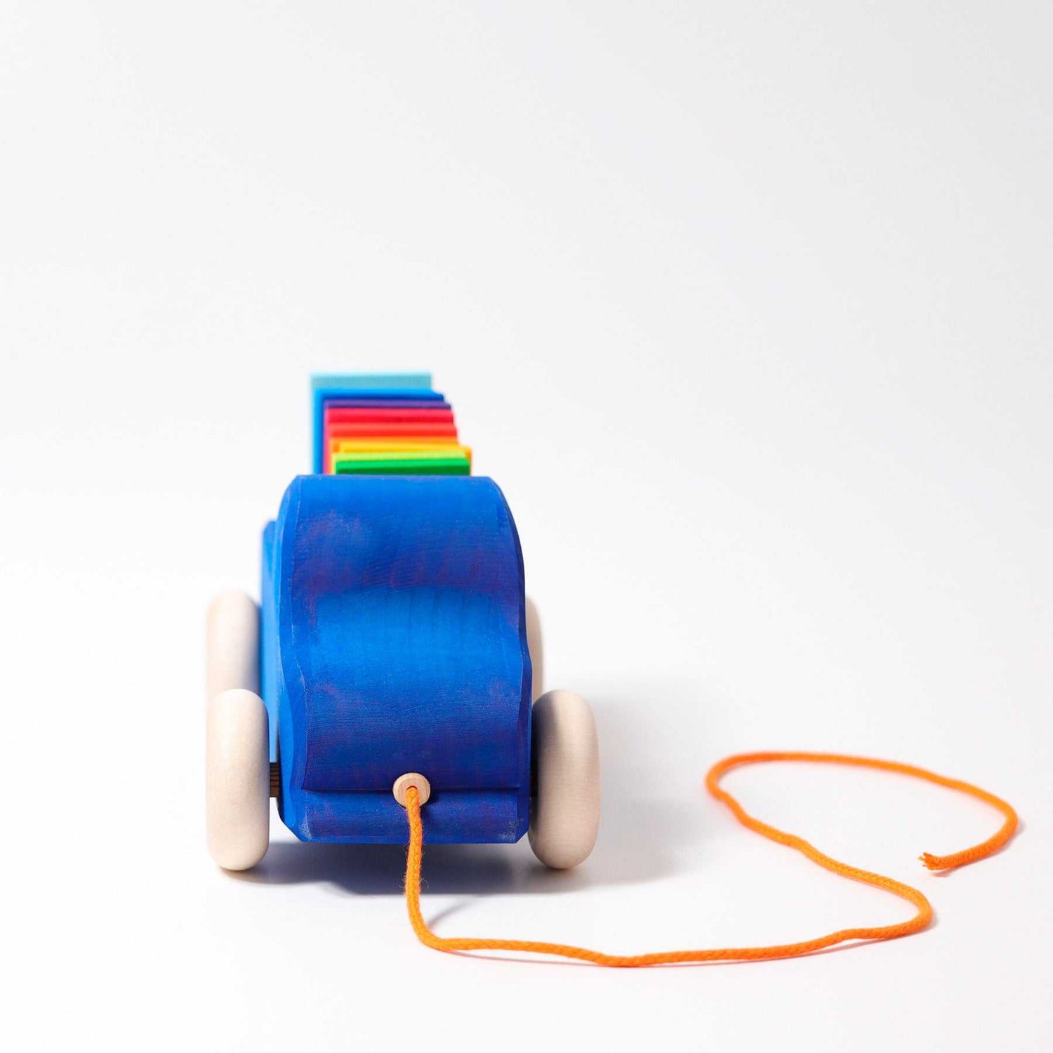 Schon die Allerkleinsten können dieses Auto mit den mitgelieferten Regenbogen Bauklötzen beladen.