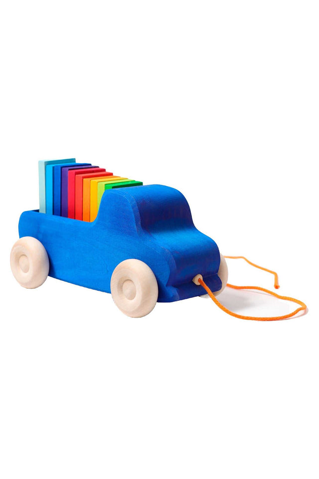 Dieser kleine Nachzieh- Lastwagen von Grimms eignet sich perfekt als erstes Auto.